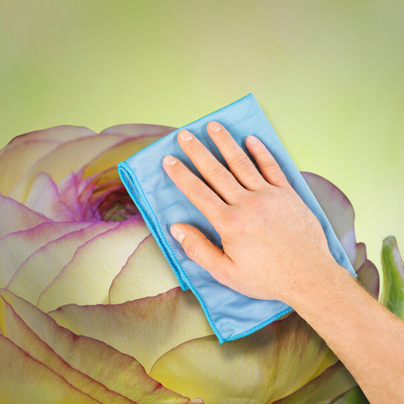 - Verwende ein weiches, nicht scheuerndes Reinigungstuch oder einen Schwamm.