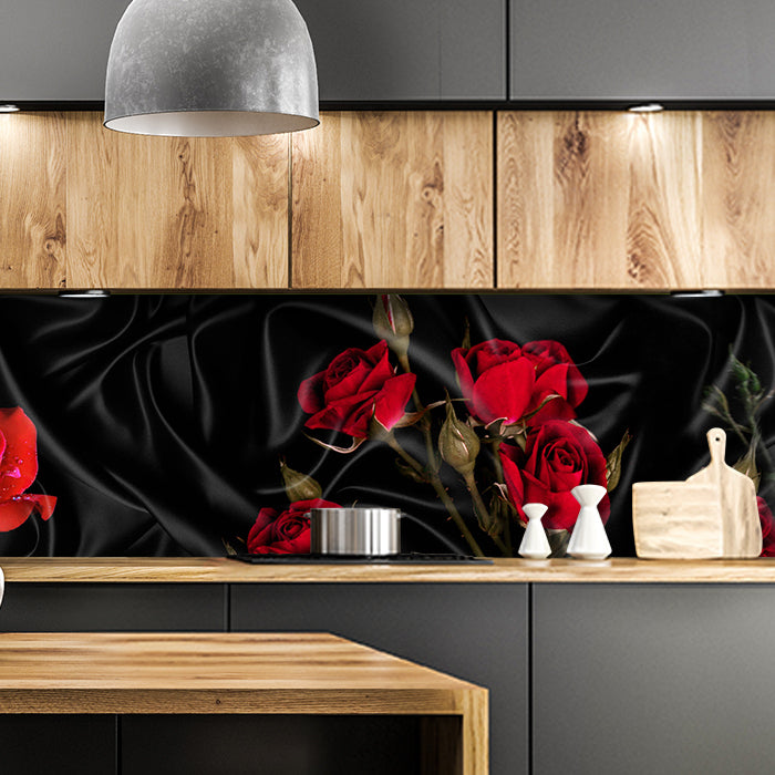 Küchenrückwand Rosen Rot Schwarz Tuch Seide M1078