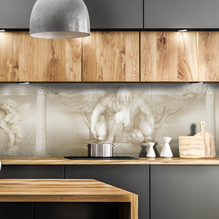 Küchenrückwand Statue Engel Weiß Hell Flügel Säulen M1137