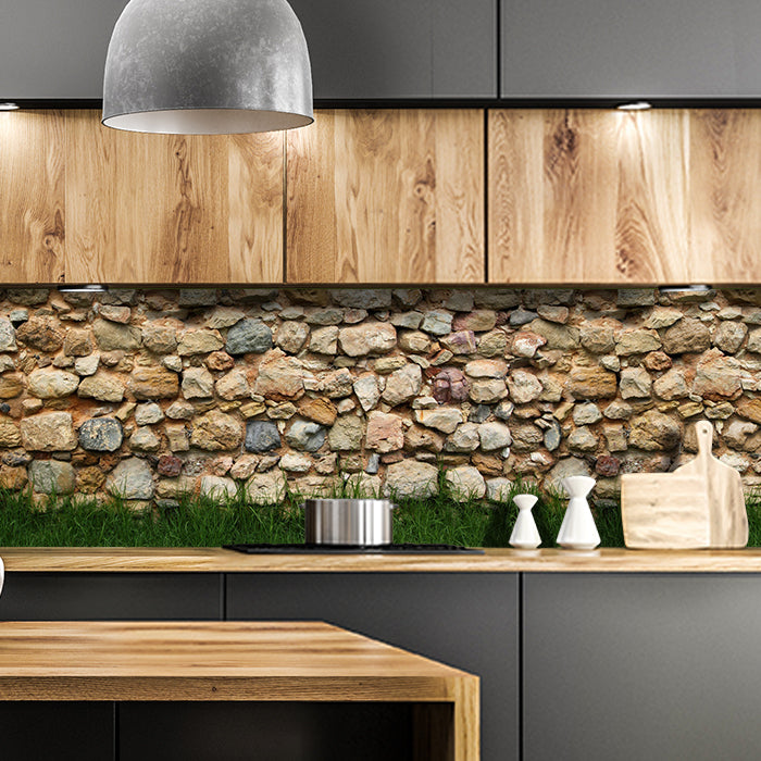 Küchenrückwand Steinmauer mit Gras M0015