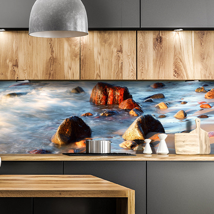 Bist Du es leid, auf die langweiligen, schwer zu reinigende Fliesen in Deiner Küche zu schauen? Stell Dir vor, wie Deine Küche mit einer stilvollen, modernen Rückwand zum Leben erwacht! Unsere Küchenrückwand 'Steinstrand Natur' ist nicht nur ein optisches Highlight, sondern auch praktisch und pflegeleicht.