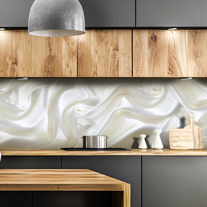 Bist Du es leid, auf die langweiligen, schwer zu reinigende Fliesen in Deiner Küche zu schauen? Stell Dir vor, wie Deine Küche mit einer stilvollen, modernen Rückwand zum Leben erwacht! Unsere Küchenrückwand 'Stoff Seide Perlen Creme Falten weiß' ist nicht nur ein optisches Highlight, sondern auch praktisch und pflegeleicht.