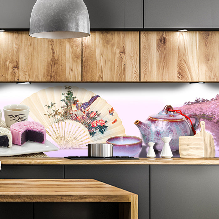 Küchenrückwand Teekanne Kuchen Teetassen Fächer M1259