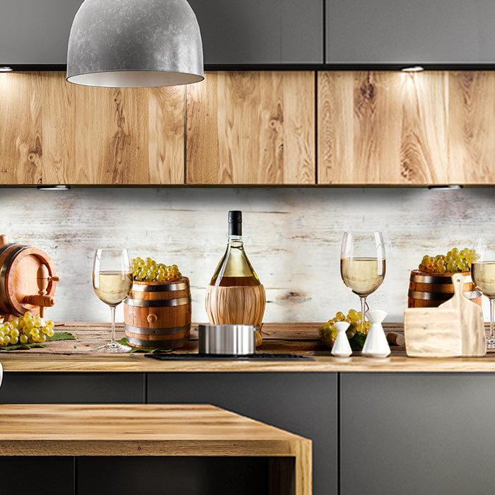 Küchenrückwand Wein Korken Holz Fass Weintrauben Glas M1089