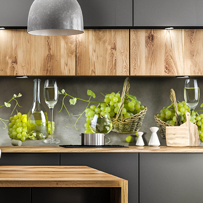 Küchenrückwand Weintrauben Gläser Körbe Korken Grün M1233