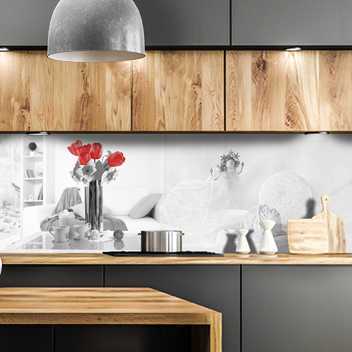 Bist Du es leid, auf die langweiligen, schwer zu reinigende Fliesen in Deiner Küche zu schauen? Stell Dir vor, wie Deine Küche mit einer stilvollen, modernen Rückwand zum Leben erwacht! Unsere Küchenrückwand 'Weiß Rot Engel Wolle Rosen Porzellan' ist nicht nur ein optisches Highlight, sondern auch praktisch und pflegeleicht.