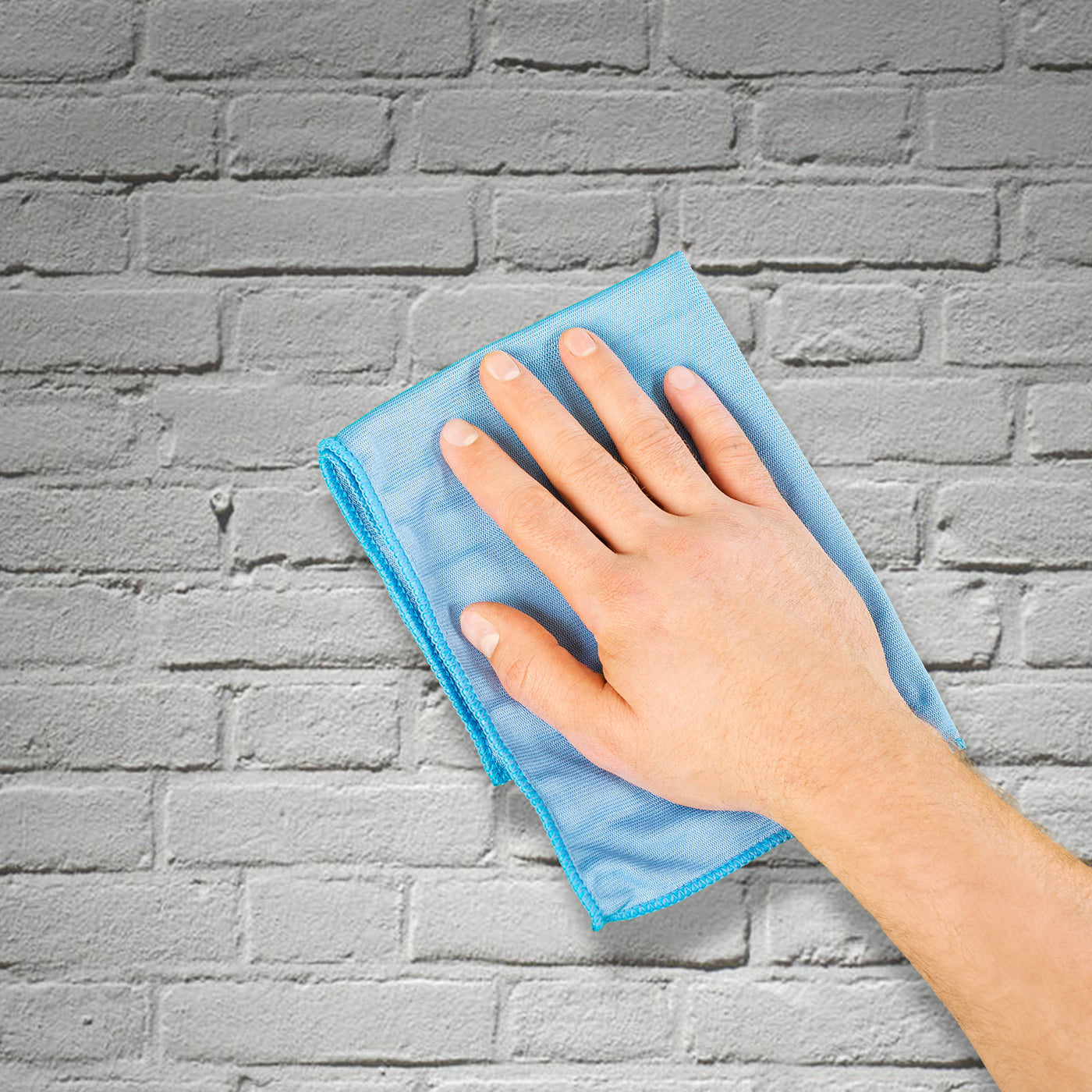 - Reinige die Wand gründlich, um Staub und Schmutz zu entfernen.