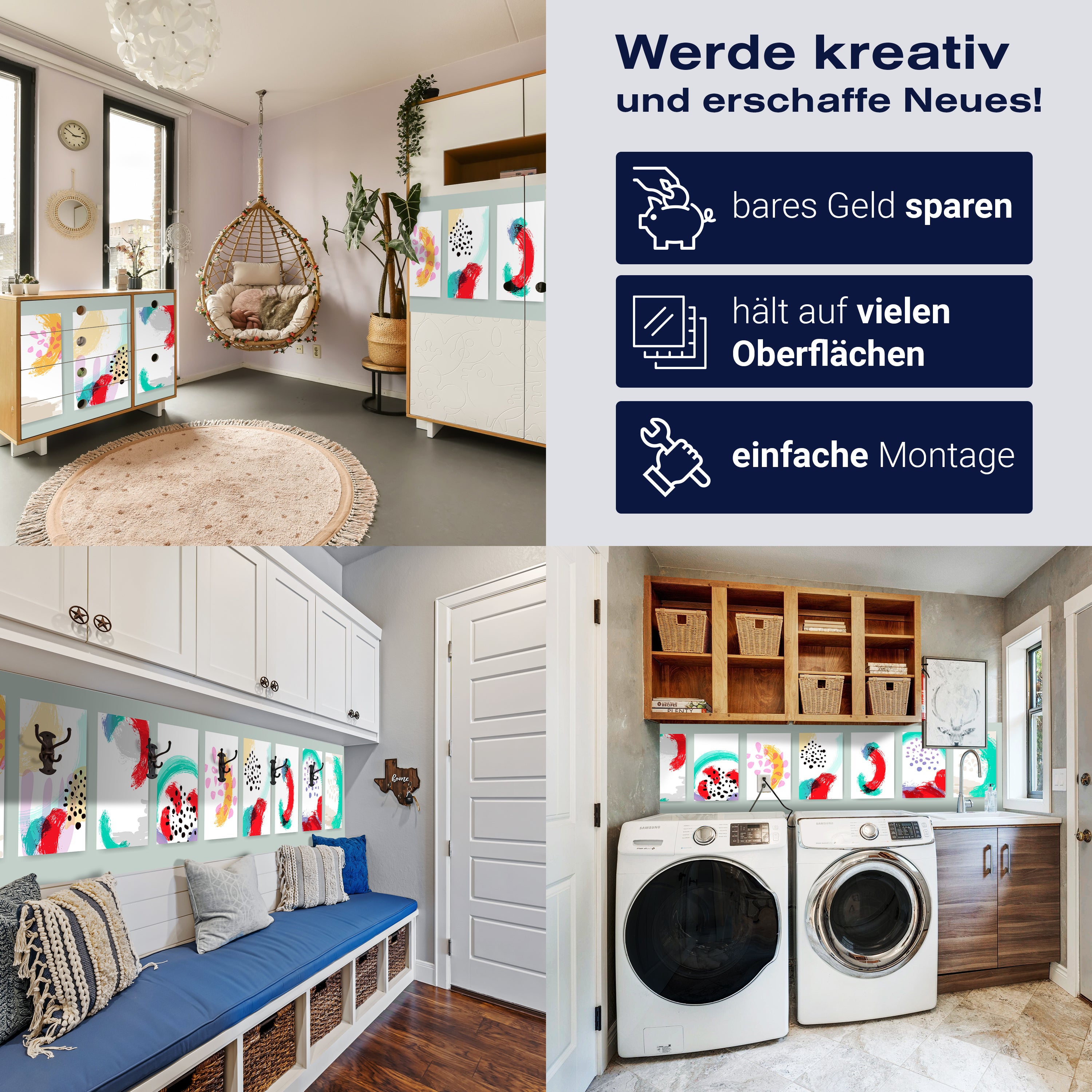 - Selbstklebendes Vlies 150g/m²: Einfach anzubringen, perfekt für Mietwohnungen.