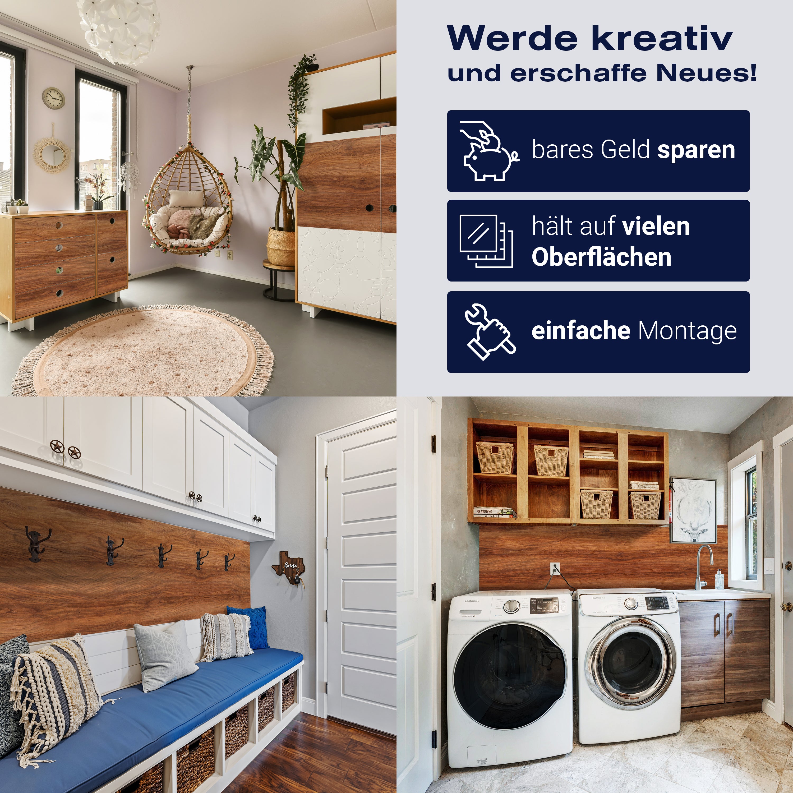 - Selbstklebendes Vlies 150g/m²: Einfach anzubringen, perfekt für Mietwohnungen.