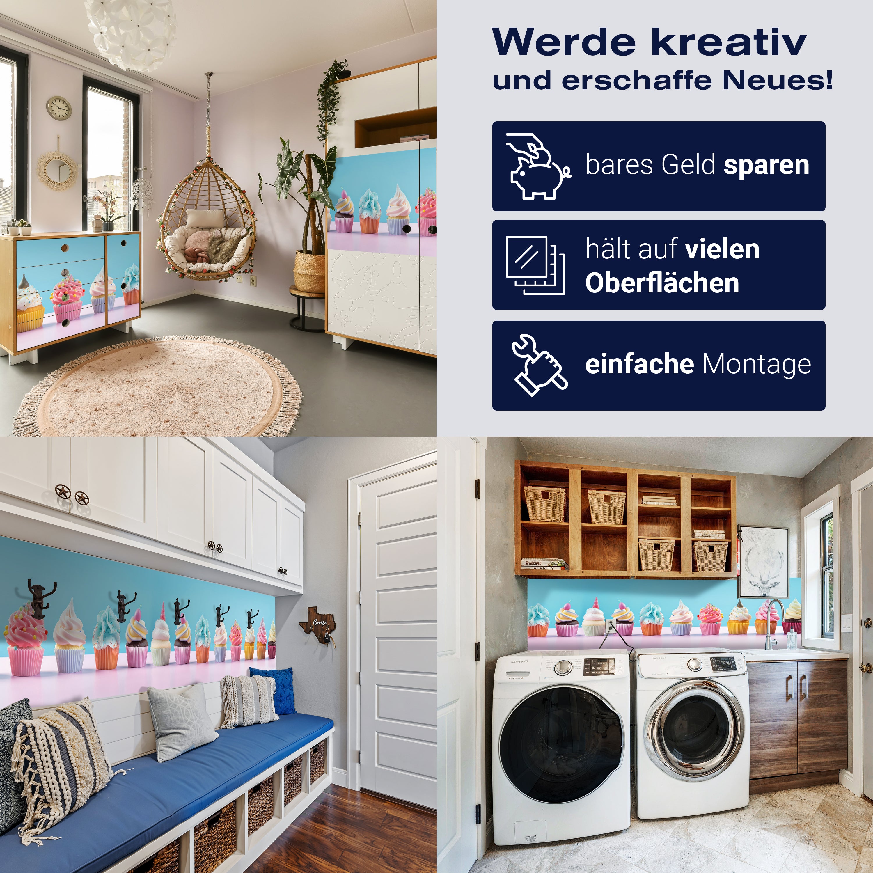 Träumst Du davon, Deine Wände in eine beeindruckende Kunstgalerie zu verwandeln? Mit unserer hochwertigen Panorama-Fototapete bunte Cupcakes M0096 ist es jetzt möglich! Jede Wand wird zu einer Leinwand Deiner Kreativität.