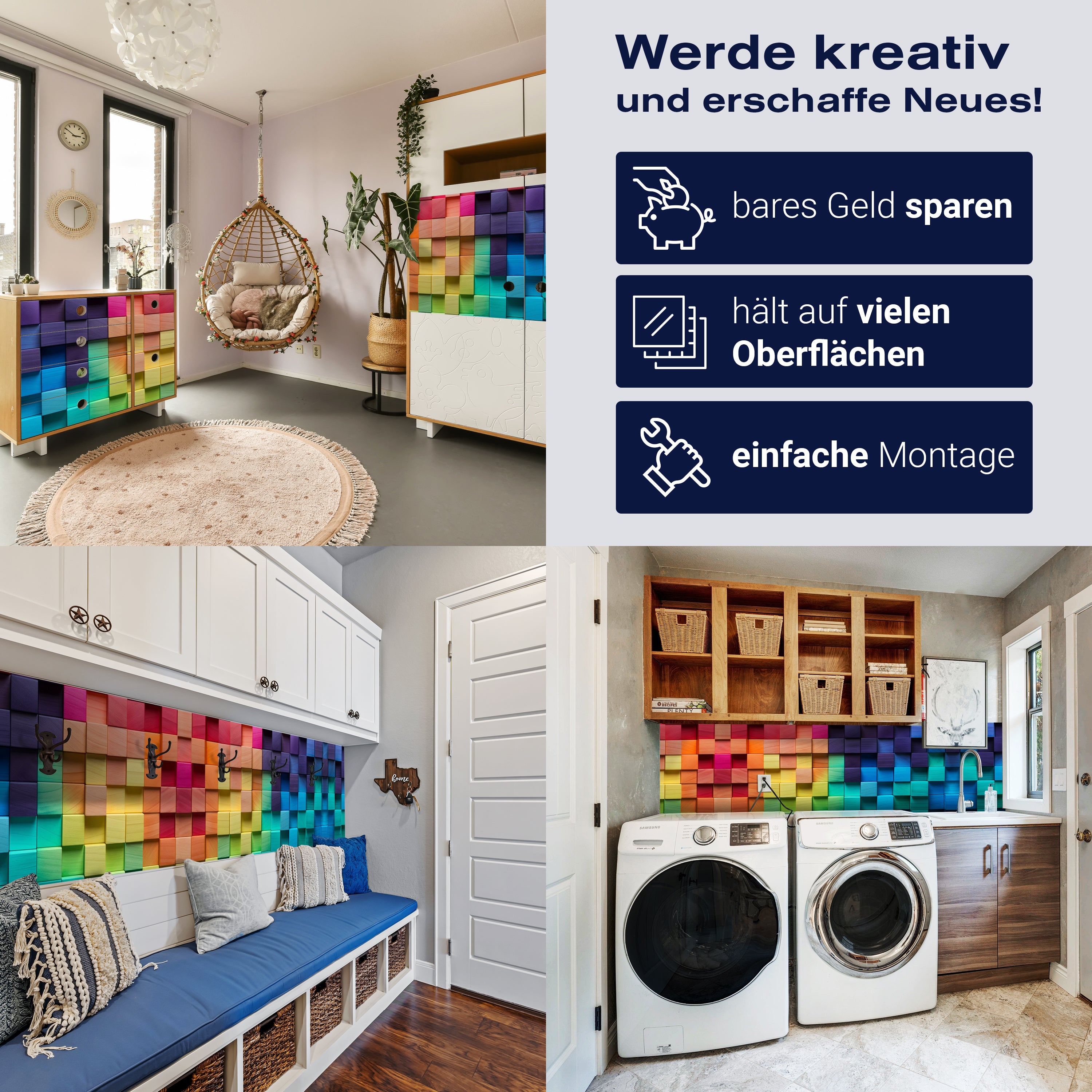 Träumst Du davon, Deine Wände in eine beeindruckende Kunstgalerie zu verwandeln? Mit unserer hochwertigen Panorama-Fototapete bunte Würfel, Regenbogen M0024 ist es jetzt möglich! Jede Wand wird zu einer Leinwand Deiner Kreativität.