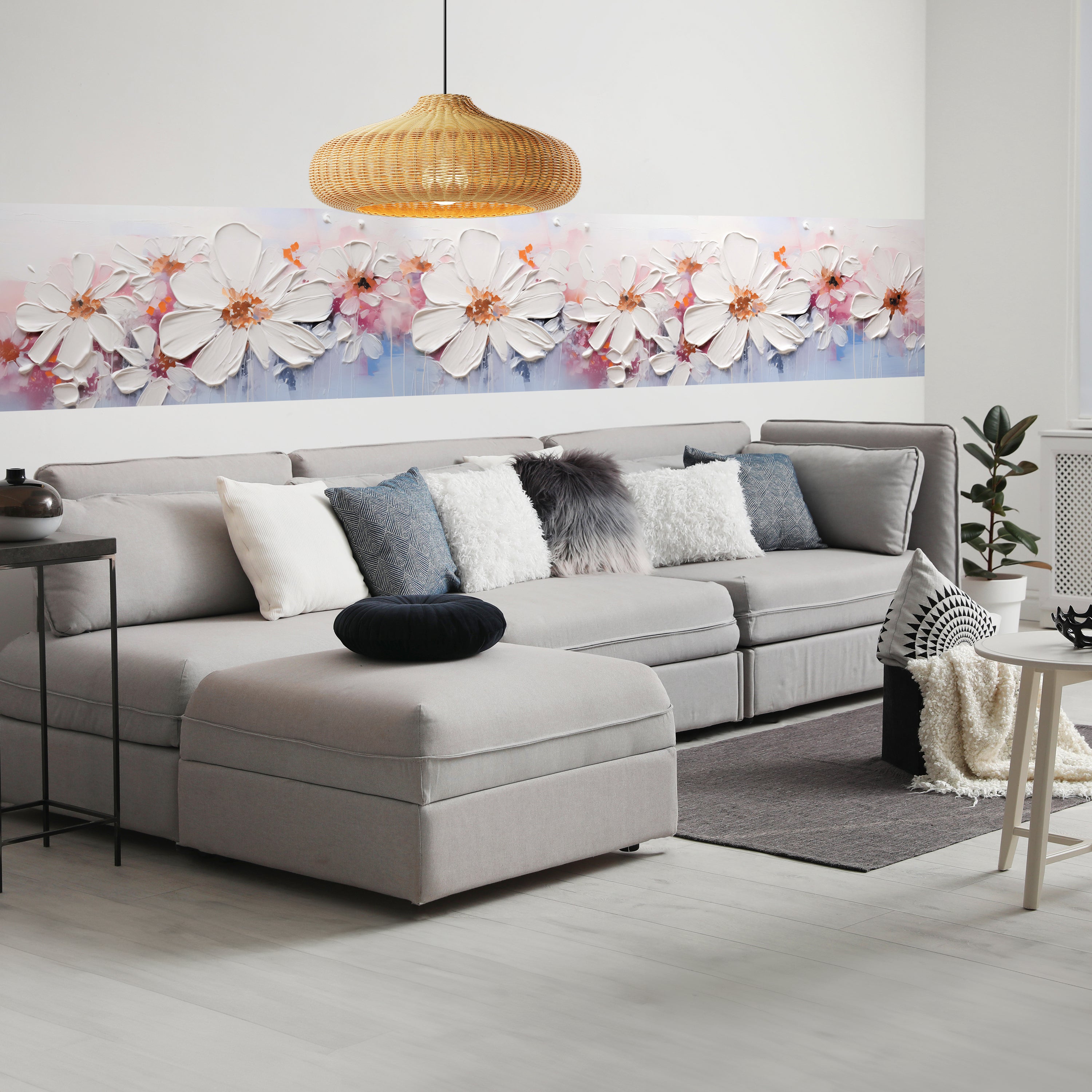 Träumst Du davon, Deine Wände in eine beeindruckende Kunstgalerie zu verwandeln? Mit unserer hochwertigen Panorama-Fototapete gemalte Blumen M0108 ist es jetzt möglich! Jede Wand wird zu einer Leinwand Deiner Kreativität.