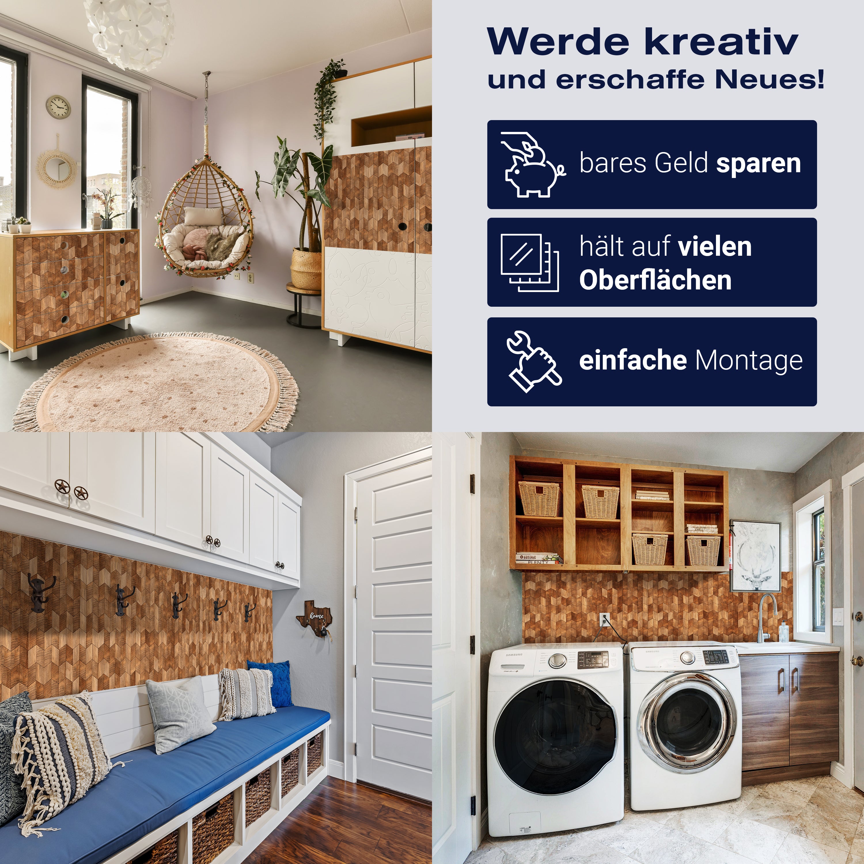 - Selbstklebendes Vlies 150g/m²: Einfach anzubringen, perfekt für Mietwohnungen.