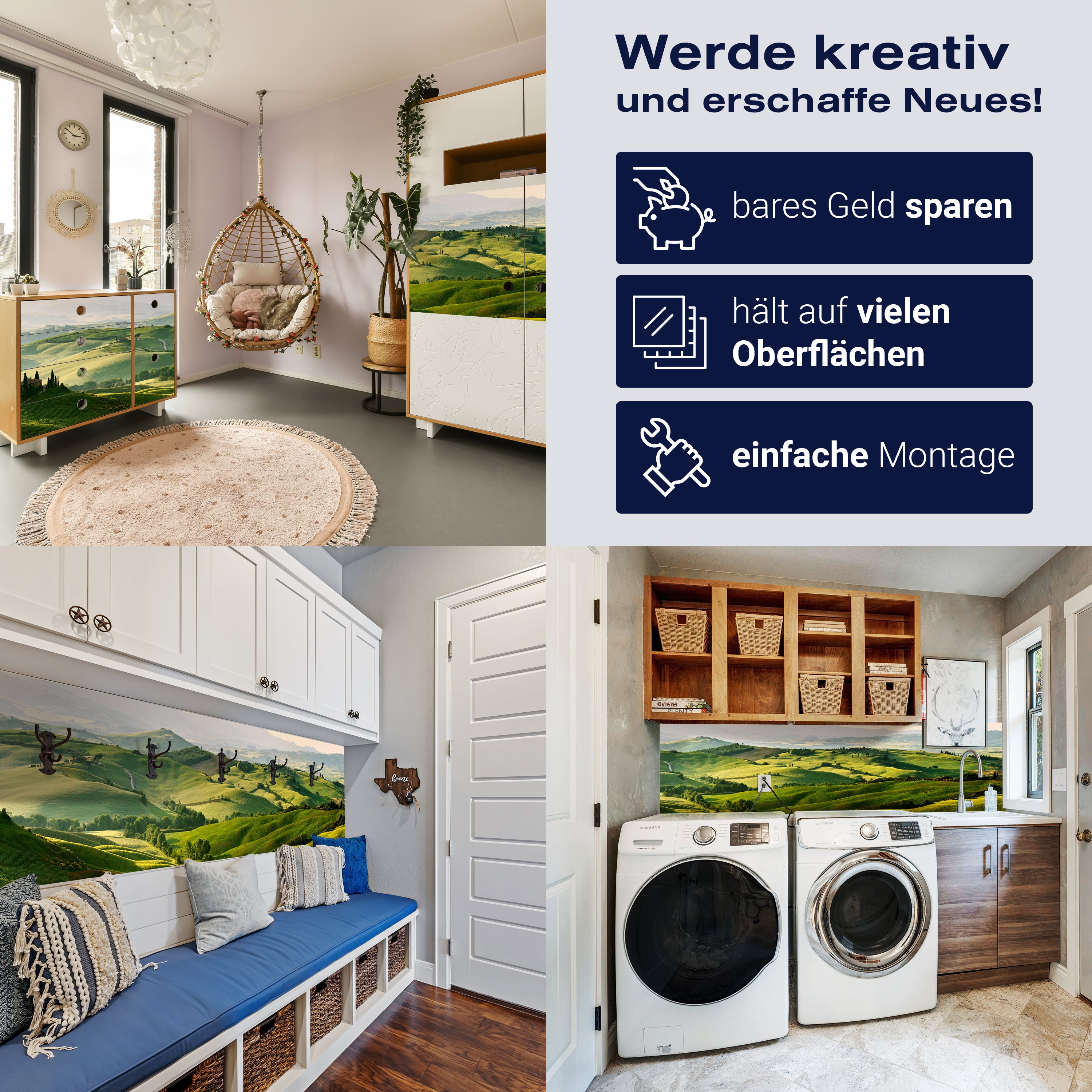 - Selbstklebendes Vlies 150g/m²: Einfach anzubringen, perfekt für Mietwohnungen.