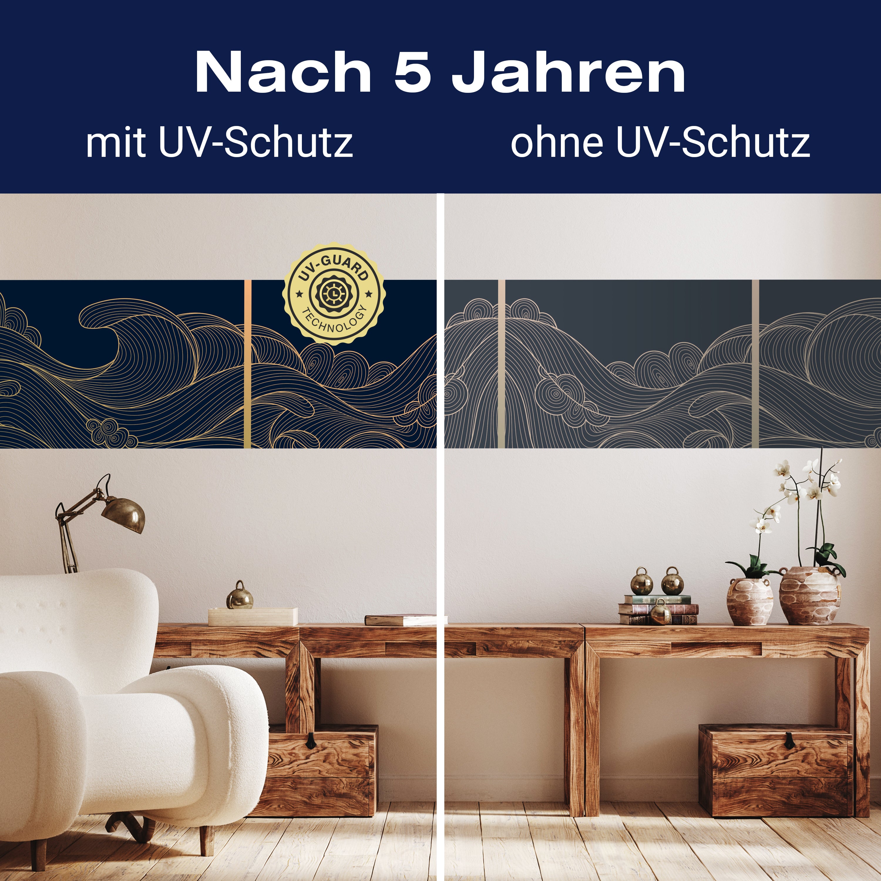 Setze auf die UV-Guard-Technologie, um deine selbstklebenden Panorama-Fototapeten nicht nur atemberaubend, sondern auch dauerhaft strahlend zu gestalten. Dieser fortschrittliche UV-Schutz sorgt dafür, dass die lebhaften Farben und scharfen Details deiner Wandgestaltung gegen die bleichende Wirkung der Sonnenstrahlen geschützt sind. Egal, wie intensiv das Sonnenlicht ist, die UV-Guard-Technologie bewahrt die Brillanz und Tiefe deiner Bilder, sodass sie jahrelang wie neu aussehen. Mach dir keine Sorgen mehr über verblassende Farben oder den Verlust von Detailreichtum. Mit dieser Technologie investierst du in die Langlebigkeit und Schönheit deiner Räume. Steige jetzt um auf UV-Guard und genieße ungetrübte Farbenpracht bei jedem Licht.