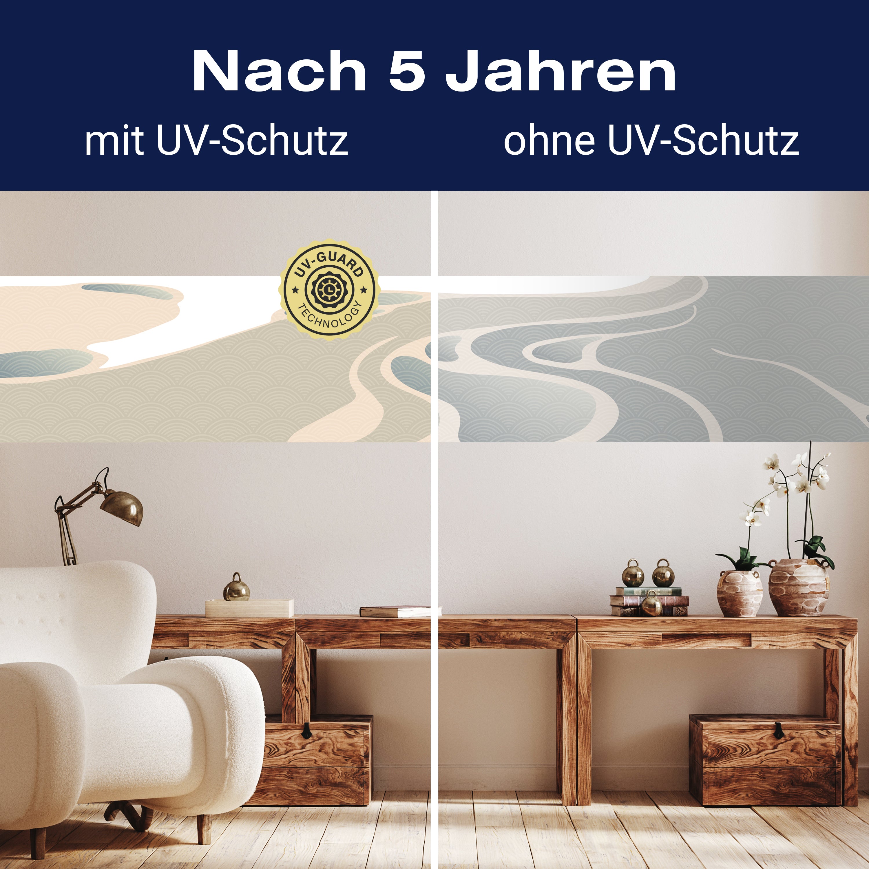 Setze auf die UV-Guard-Technologie, um deine selbstklebenden Panorama-Fototapeten nicht nur atemberaubend, sondern auch dauerhaft strahlend zu gestalten. Dieser fortschrittliche UV-Schutz sorgt dafür, dass die lebhaften Farben und scharfen Details deiner Wandgestaltung gegen die bleichende Wirkung der Sonnenstrahlen geschützt sind. Egal, wie intensiv das Sonnenlicht ist, die UV-Guard-Technologie bewahrt die Brillanz und Tiefe deiner Bilder, sodass sie jahrelang wie neu aussehen. Mach dir keine Sorgen mehr über verblassende Farben oder den Verlust von Detailreichtum. Mit dieser Technologie investierst du in die Langlebigkeit und Schönheit deiner Räume. Steige jetzt um auf UV-Guard und genieße ungetrübte Farbenpracht bei jedem Licht.
