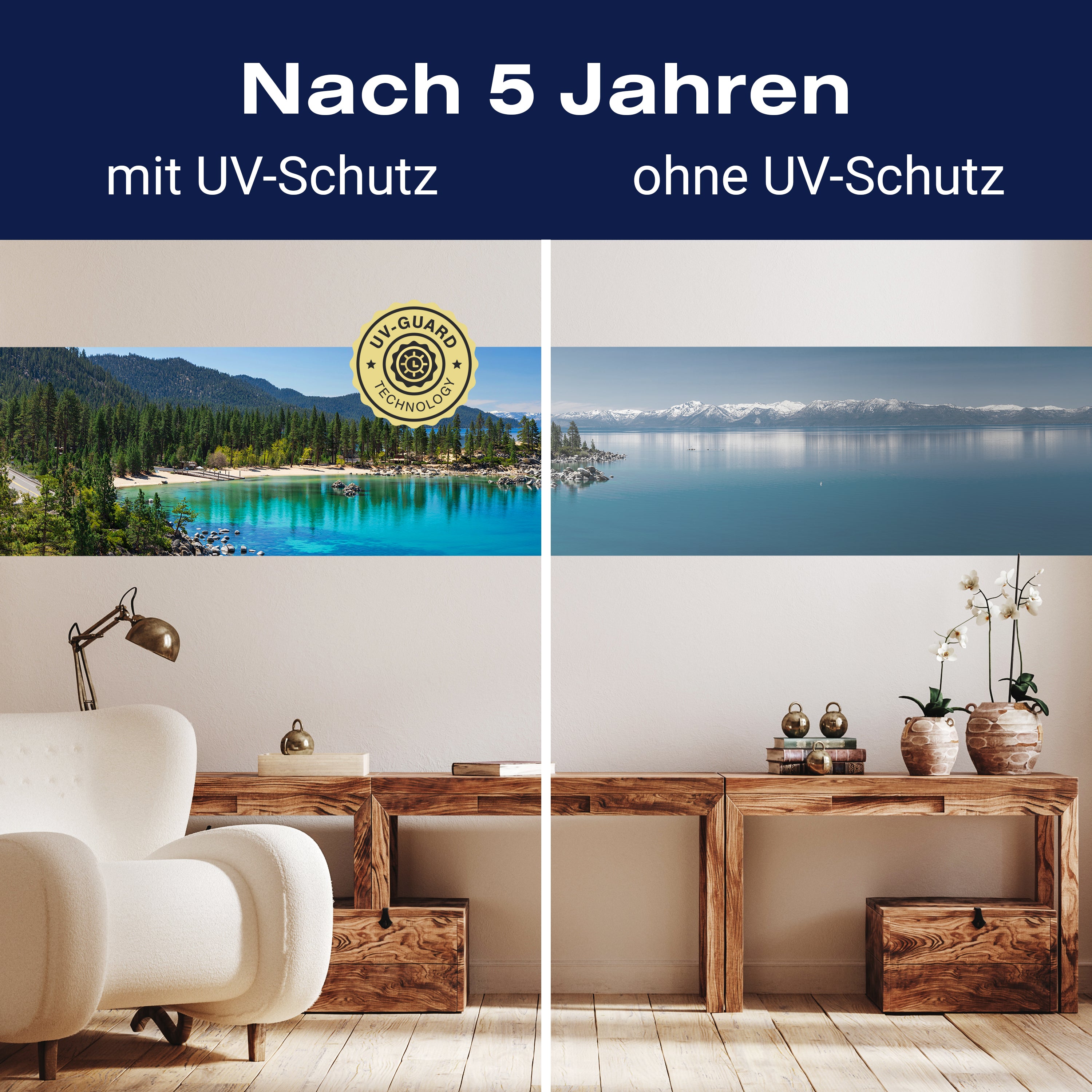Setze auf die UV-Guard-Technologie, um deine selbstklebenden Panorama-Fototapeten nicht nur atemberaubend, sondern auch dauerhaft strahlend zu gestalten. Dieser fortschrittliche UV-Schutz sorgt dafür, dass die lebhaften Farben und scharfen Details deiner Wandgestaltung gegen die bleichende Wirkung der Sonnenstrahlen geschützt sind. Egal, wie intensiv das Sonnenlicht ist, die UV-Guard-Technologie bewahrt die Brillanz und Tiefe deiner Bilder, sodass sie jahrelang wie neu aussehen. Mach dir keine Sorgen mehr über verblassende Farben oder den Verlust von Detailreichtum. Mit dieser Technologie investierst du in die Langlebigkeit und Schönheit deiner Räume. Steige jetzt um auf UV-Guard und genieße ungetrübte Farbenpracht bei jedem Licht.