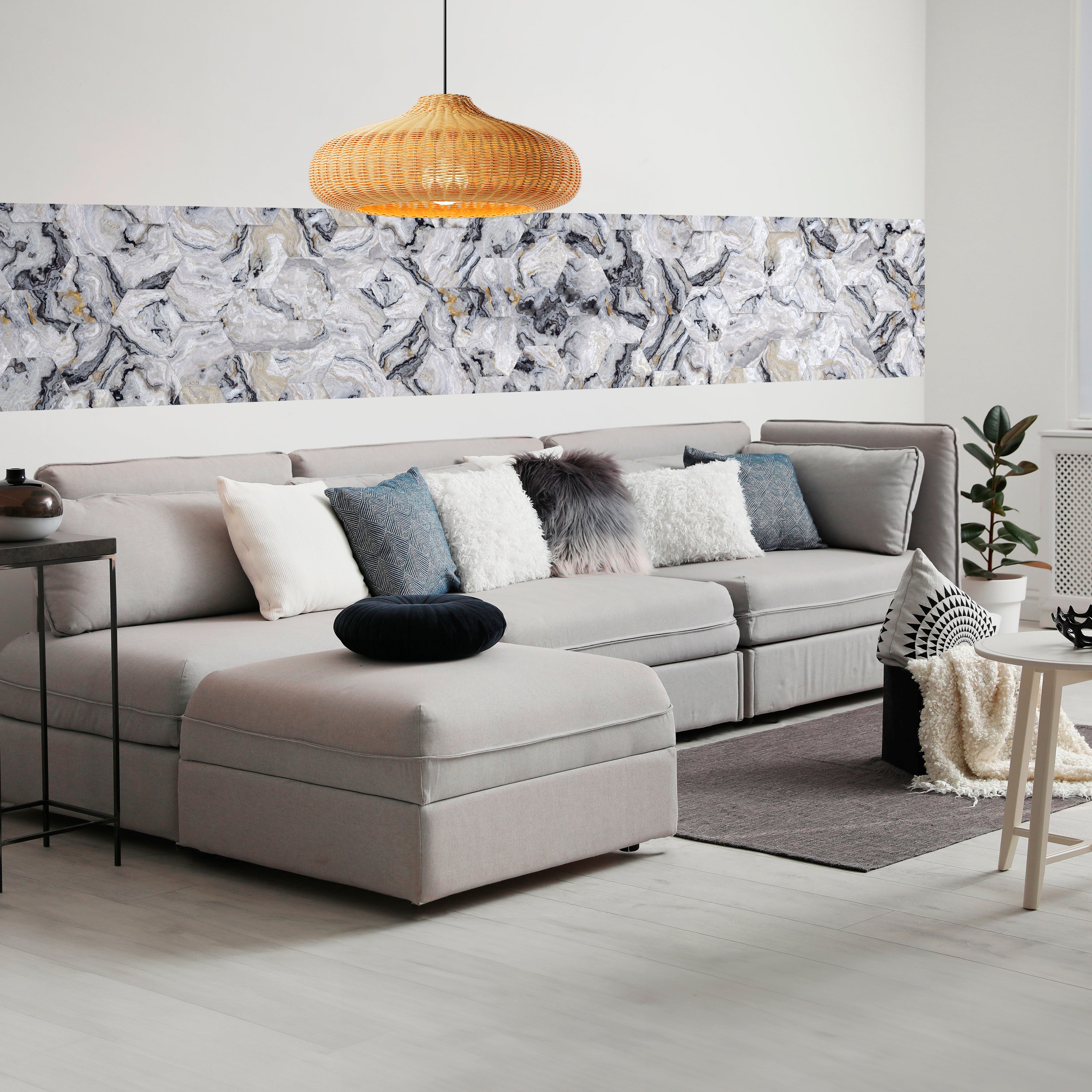Träumst Du davon, Deine Wände in eine beeindruckende Kunstgalerie zu verwandeln? Mit unserer hochwertigen Panorama-Fototapete Marmor Romben M0135 ist es jetzt möglich! Jede Wand wird zu einer Leinwand Deiner Kreativität.