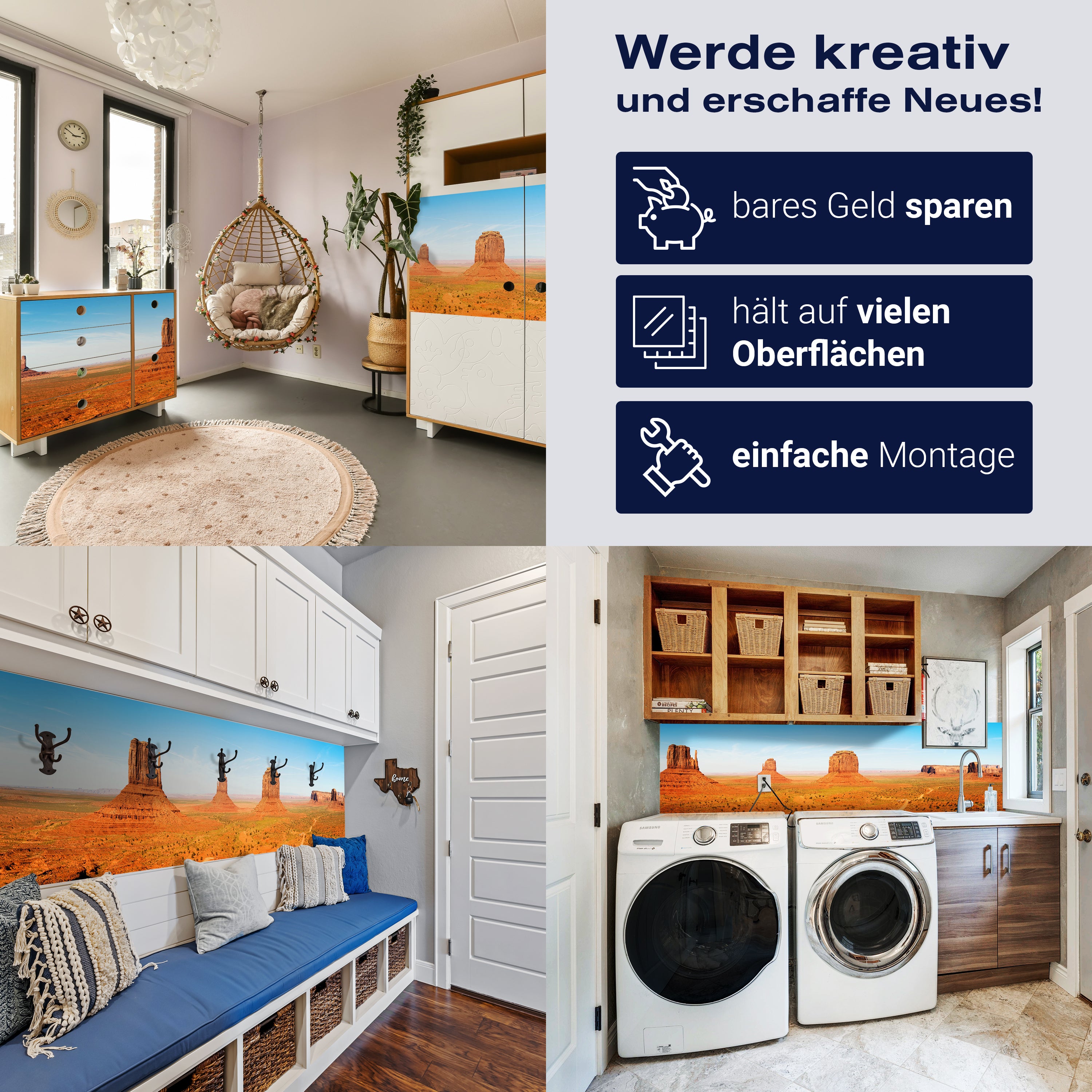 Träumst Du davon, Deine Wände in eine beeindruckende Kunstgalerie zu verwandeln? Mit unserer hochwertigen Panorama-Fototapete Monument Valley M0028 ist es jetzt möglich! Jede Wand wird zu einer Leinwand Deiner Kreativität.