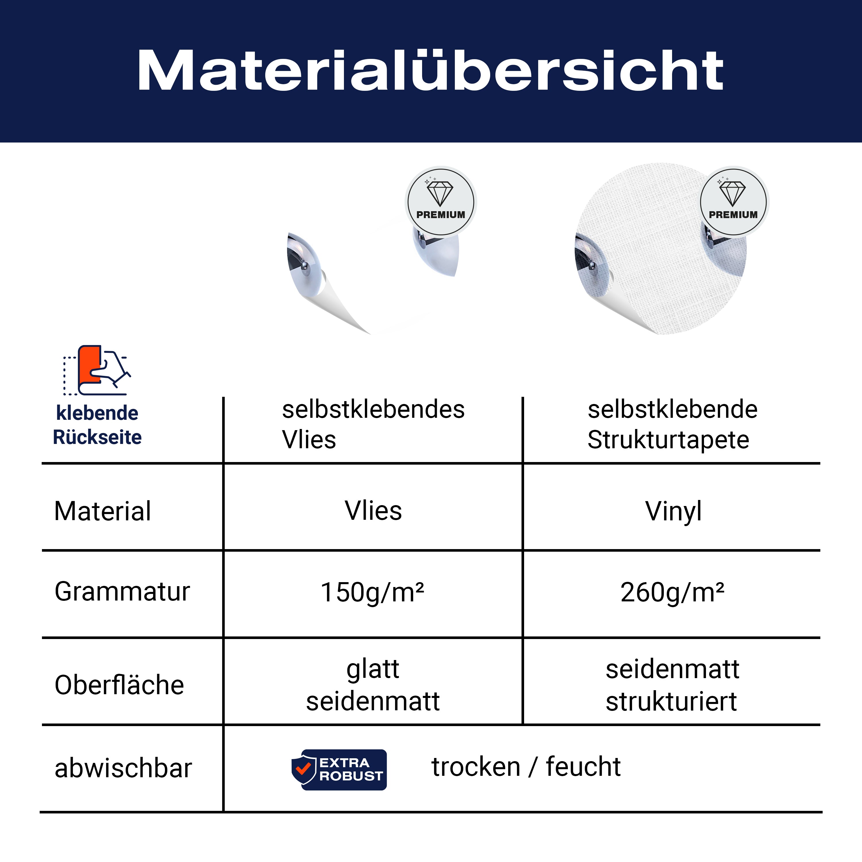 - Selbstklebendes Vlies 150g/m²: Einfach anzubringen, perfekt für Mietwohnungen.