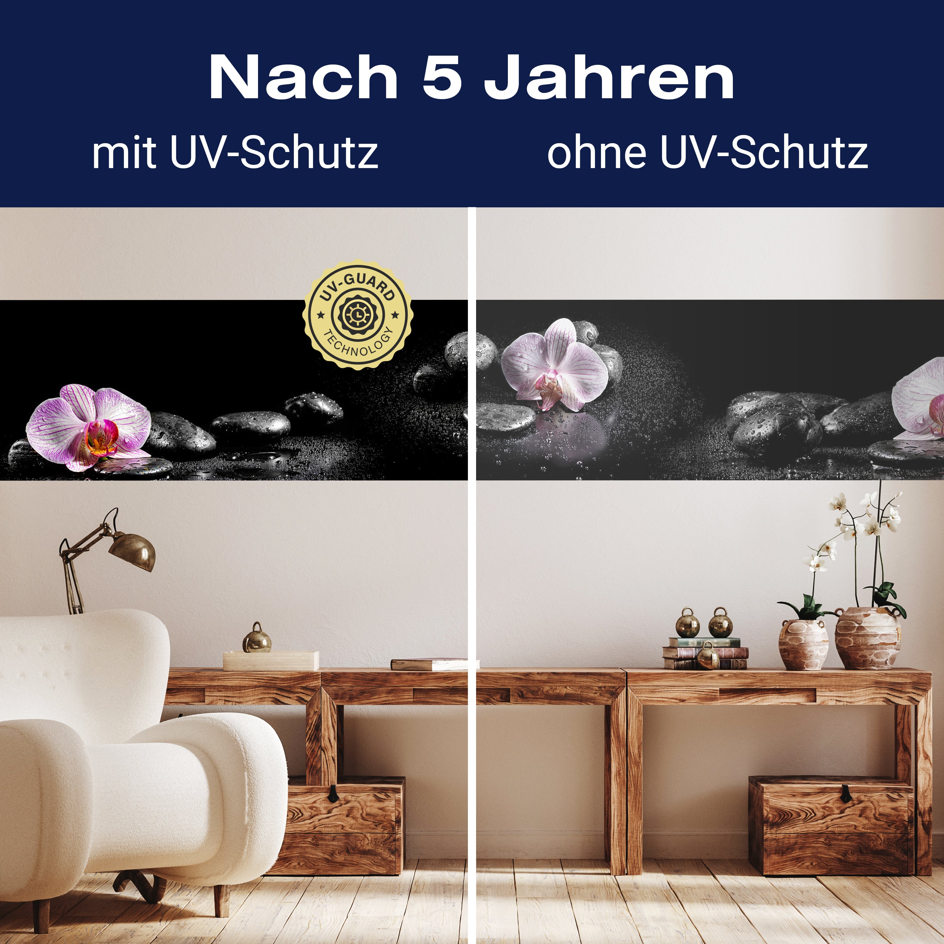 Setze auf die UV-Guard-Technologie, um deine selbstklebenden Panorama-Fototapeten nicht nur atemberaubend, sondern auch dauerhaft strahlend zu gestalten. Dieser fortschrittliche UV-Schutz sorgt dafür, dass die lebhaften Farben und scharfen Details deiner Wandgestaltung gegen die bleichende Wirkung der Sonnenstrahlen geschützt sind. Egal, wie intensiv das Sonnenlicht ist, die UV-Guard-Technologie bewahrt die Brillanz und Tiefe deiner Bilder, sodass sie jahrelang wie neu aussehen. Mach dir keine Sorgen mehr über verblassende Farben oder den Verlust von Detailreichtum. Mit dieser Technologie investierst du in die Langlebigkeit und Schönheit deiner Räume. Steige jetzt um auf UV-Guard und genieße ungetrübte Farbenpracht bei jedem Licht.