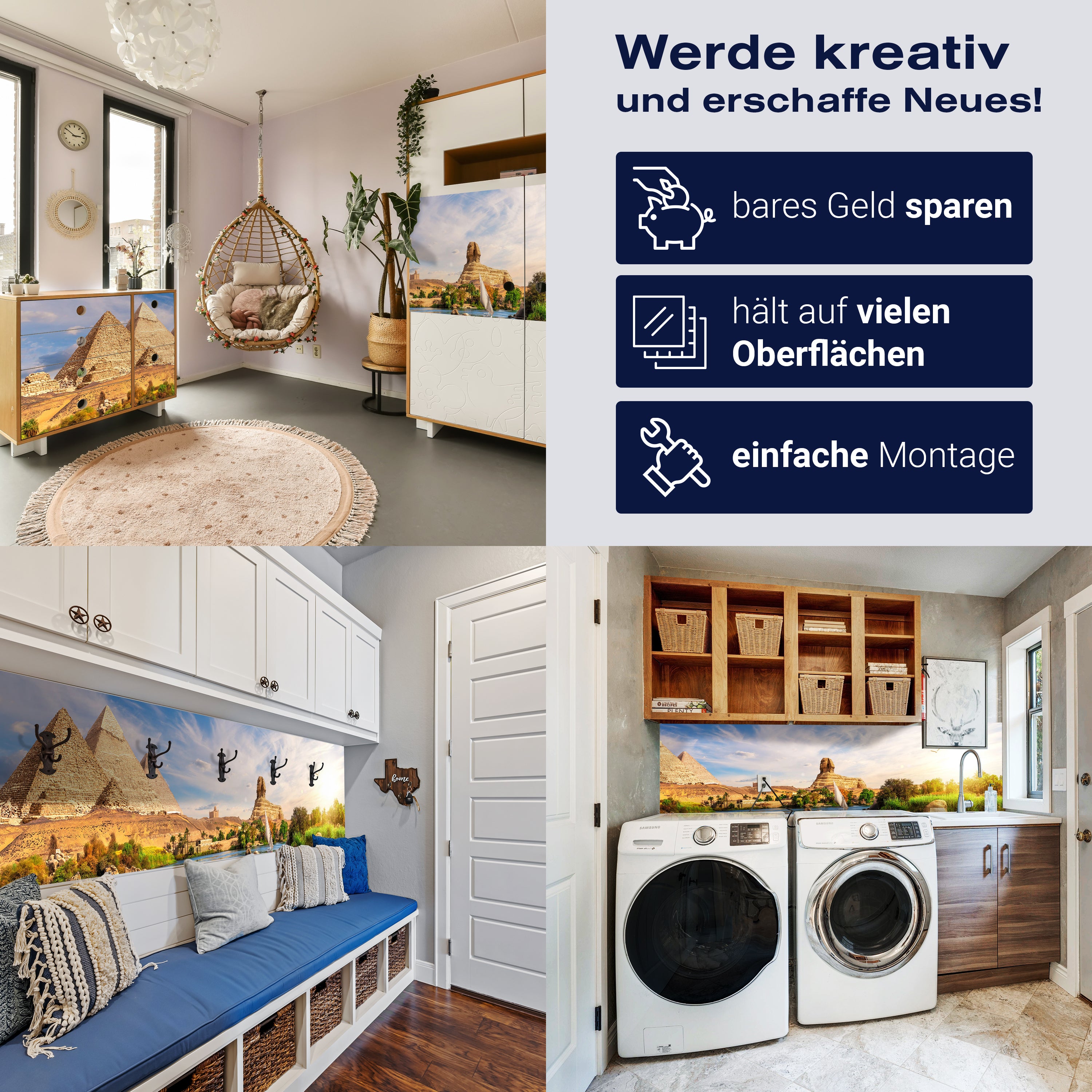 - Selbstklebendes Vlies 150g/m²: Einfach anzubringen, perfekt für Mietwohnungen.