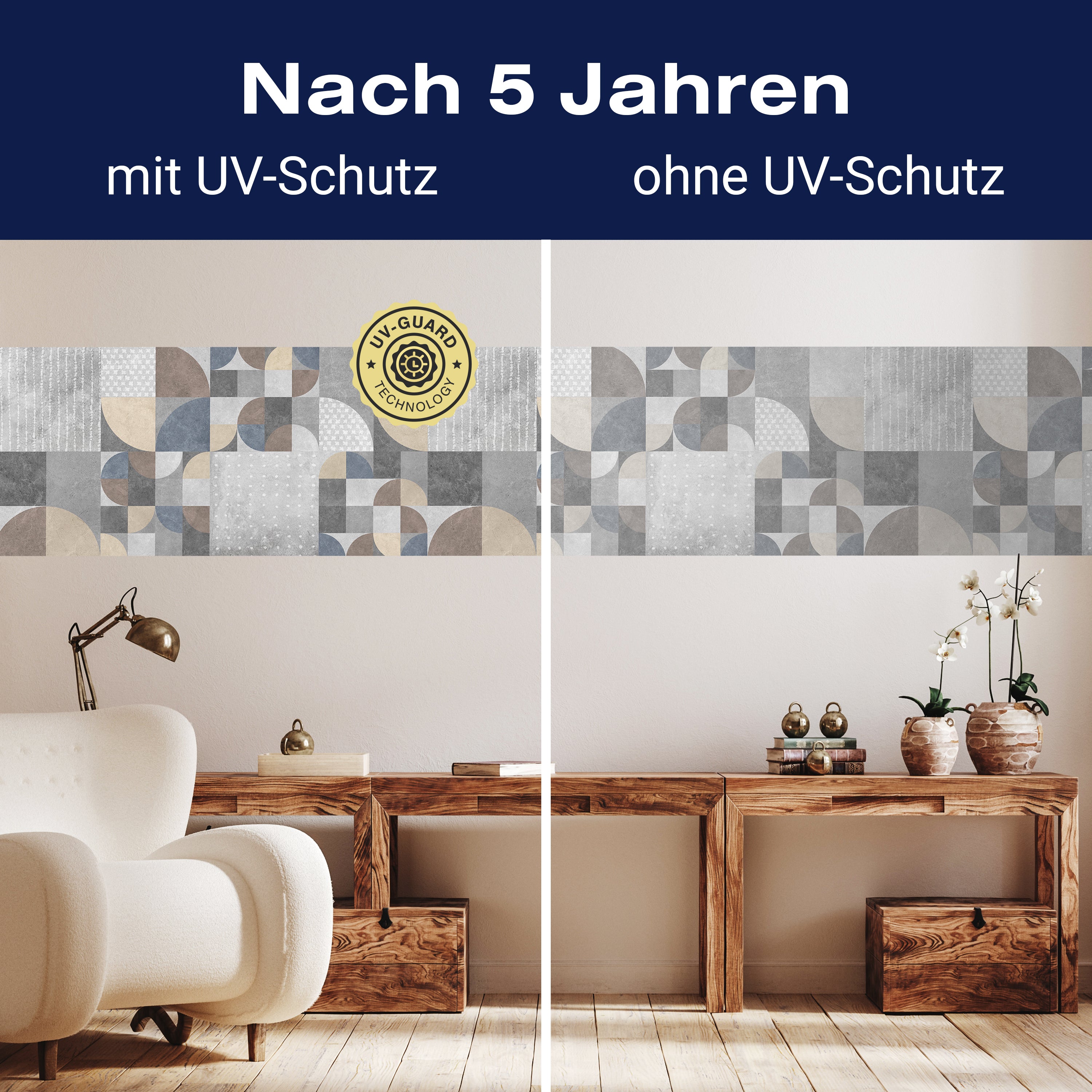 Setze auf die UV-Guard-Technologie, um deine selbstklebenden Panorama-Fototapeten nicht nur atemberaubend, sondern auch dauerhaft strahlend zu gestalten. Dieser fortschrittliche UV-Schutz sorgt dafür, dass die lebhaften Farben und scharfen Details deiner Wandgestaltung gegen die bleichende Wirkung der Sonnenstrahlen geschützt sind. Egal, wie intensiv das Sonnenlicht ist, die UV-Guard-Technologie bewahrt die Brillanz und Tiefe deiner Bilder, sodass sie jahrelang wie neu aussehen. Mach dir keine Sorgen mehr über verblassende Farben oder den Verlust von Detailreichtum. Mit dieser Technologie investierst du in die Langlebigkeit und Schönheit deiner Räume. Steige jetzt um auf UV-Guard und genieße ungetrübte Farbenpracht bei jedem Licht.