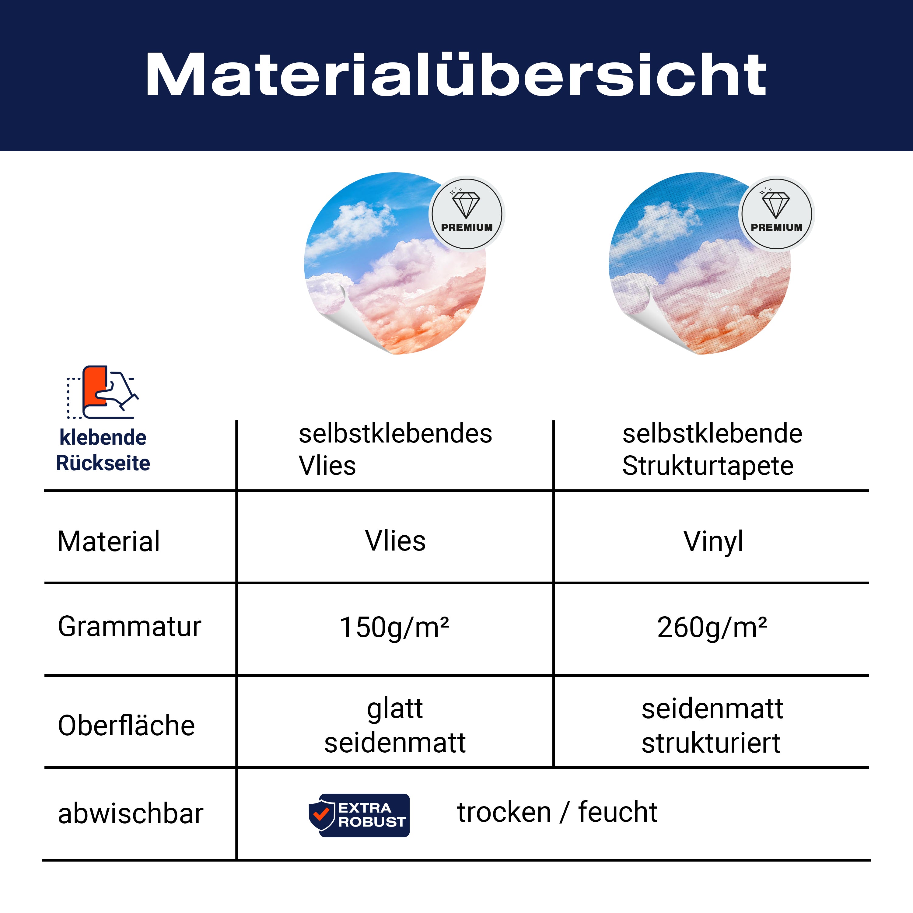 Setze auf die UV-Guard-Technologie, um deine selbstklebenden Panorama-Fototapeten nicht nur atemberaubend, sondern auch dauerhaft strahlend zu gestalten. Dieser fortschrittliche UV-Schutz sorgt dafür, dass die lebhaften Farben und scharfen Details deiner Wandgestaltung gegen die bleichende Wirkung der Sonnenstrahlen geschützt sind. Egal, wie intensiv das Sonnenlicht ist, die UV-Guard-Technologie bewahrt die Brillanz und Tiefe deiner Bilder, sodass sie jahrelang wie neu aussehen. Mach dir keine Sorgen mehr über verblassende Farben oder den Verlust von Detailreichtum. Mit dieser Technologie investierst du in die Langlebigkeit und Schönheit deiner Räume. Steige jetzt um auf UV-Guard und genieße ungetrübte Farbenpracht bei jedem Licht.