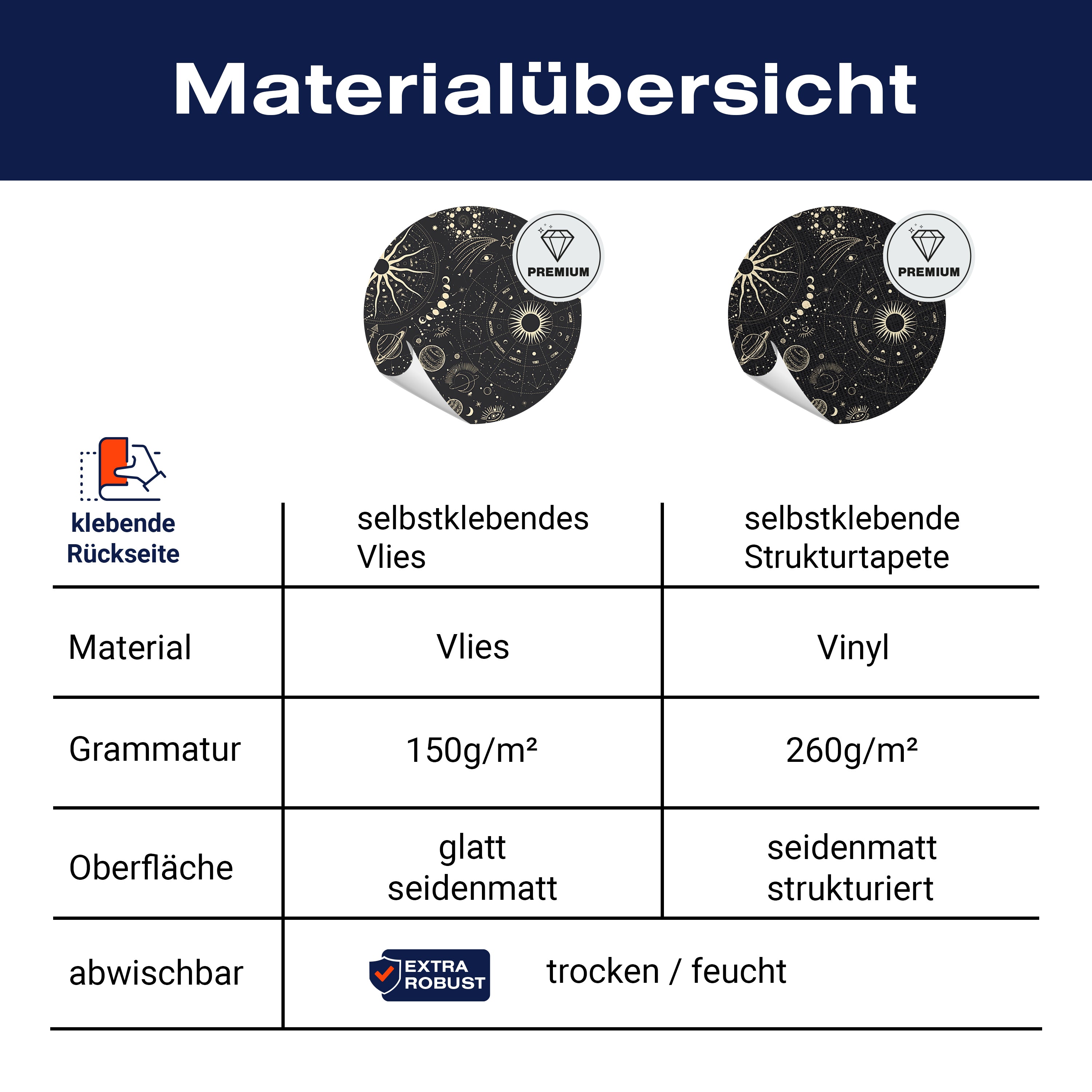 - Selbstklebendes Vlies 150g/m²: Einfach anzubringen, perfekt für Mietwohnungen.