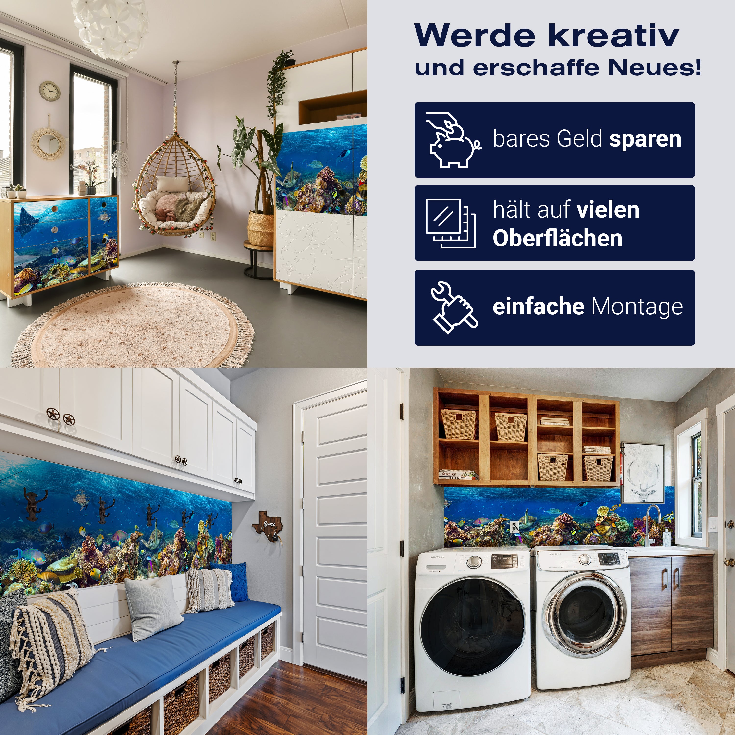 Träumst Du davon, Deine Wände in eine beeindruckende Kunstgalerie zu verwandeln? Mit unserer hochwertigen Panorama-Fototapete Unterwasser Welt M0039 ist es jetzt möglich! Jede Wand wird zu einer Leinwand Deiner Kreativität.