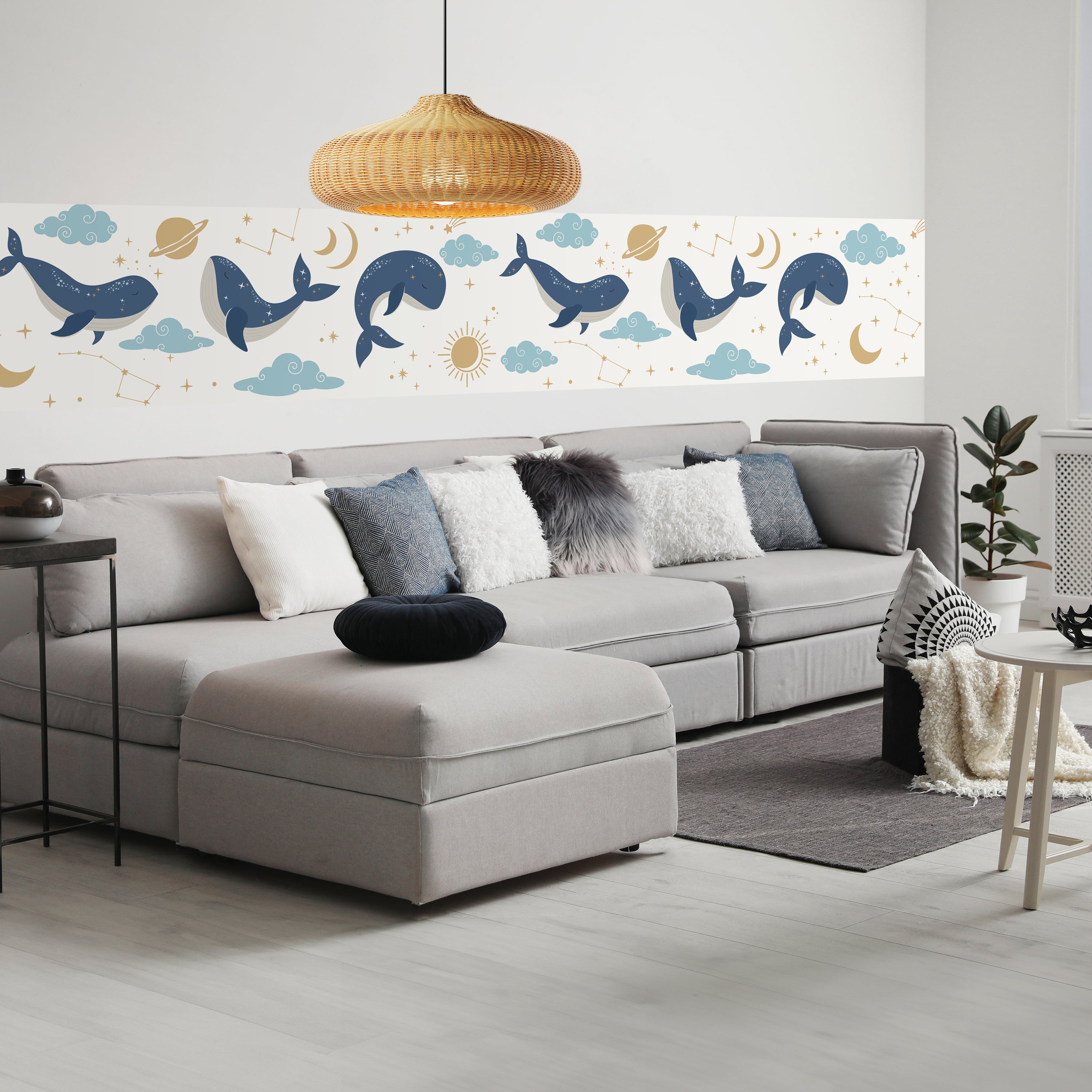 Träumst Du davon, Deine Wände in eine beeindruckende Kunstgalerie zu verwandeln? Mit unserer hochwertigen Panorama-Fototapete Wale am Himmel M0112 ist es jetzt möglich! Jede Wand wird zu einer Leinwand Deiner Kreativität.