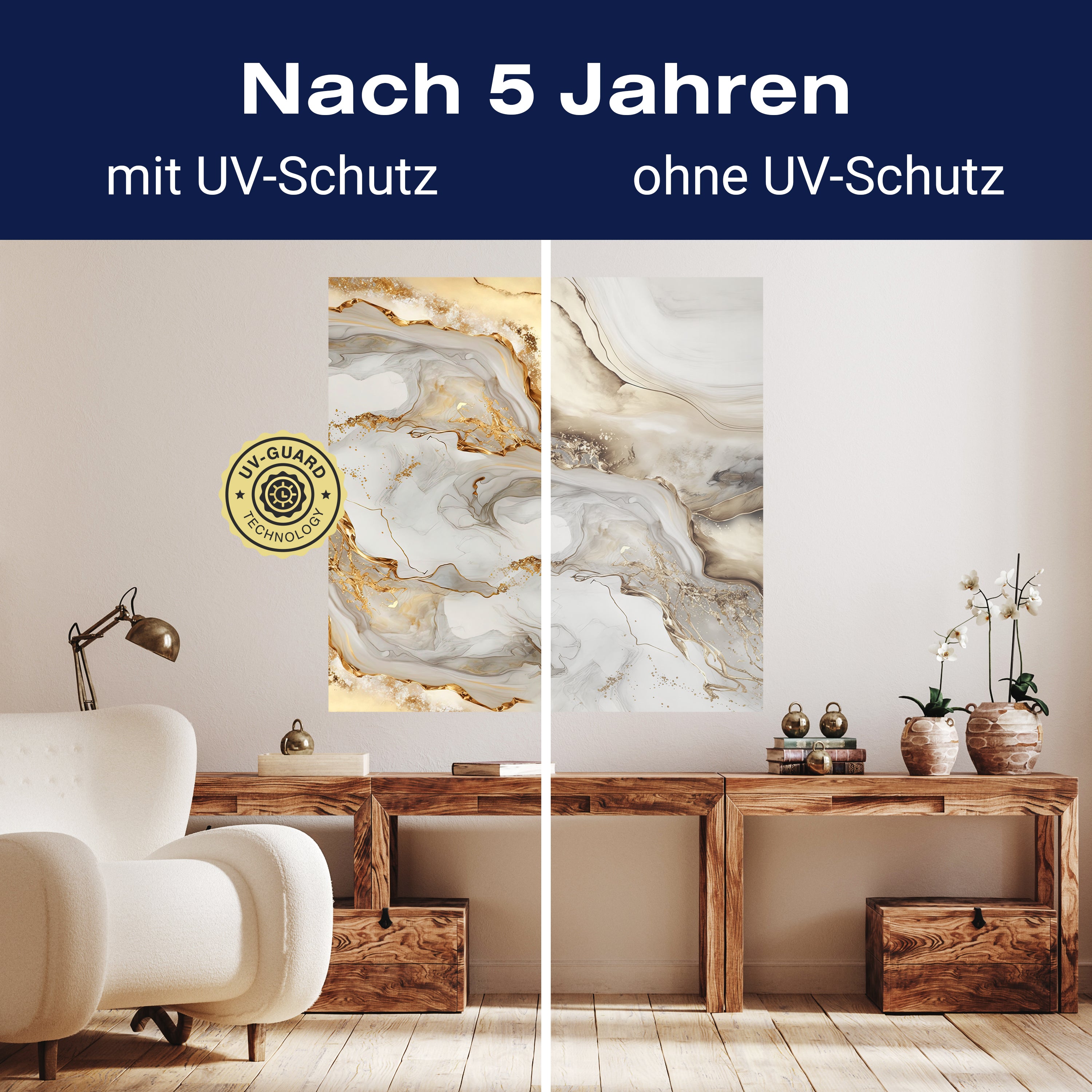 Setze auf die UV-Guard-Technologie, um deine selbstklebenden Panorama-Fototapeten nicht nur atemberaubend, sondern auch dauerhaft strahlend zu gestalten. Dieser fortschrittliche UV-Schutz sorgt dafür, dass die lebhaften Farben und scharfen Details deiner Wandgestaltung gegen die bleichende Wirkung der Sonnenstrahlen geschützt sind. Egal, wie intensiv das Sonnenlicht ist, die UV-Guard-Technologie bewahrt die Brillanz und Tiefe deiner Bilder, sodass sie jahrelang wie neu aussehen. Mach dir keine Sorgen mehr über verblassende Farben oder den Verlust von Detailreichtum. Mit dieser Technologie investierst du in die Langlebigkeit und Schönheit deiner Räume. Steige jetzt um auf UV-Guard und genieße ungetrübte Farbenpracht bei jedem Licht.