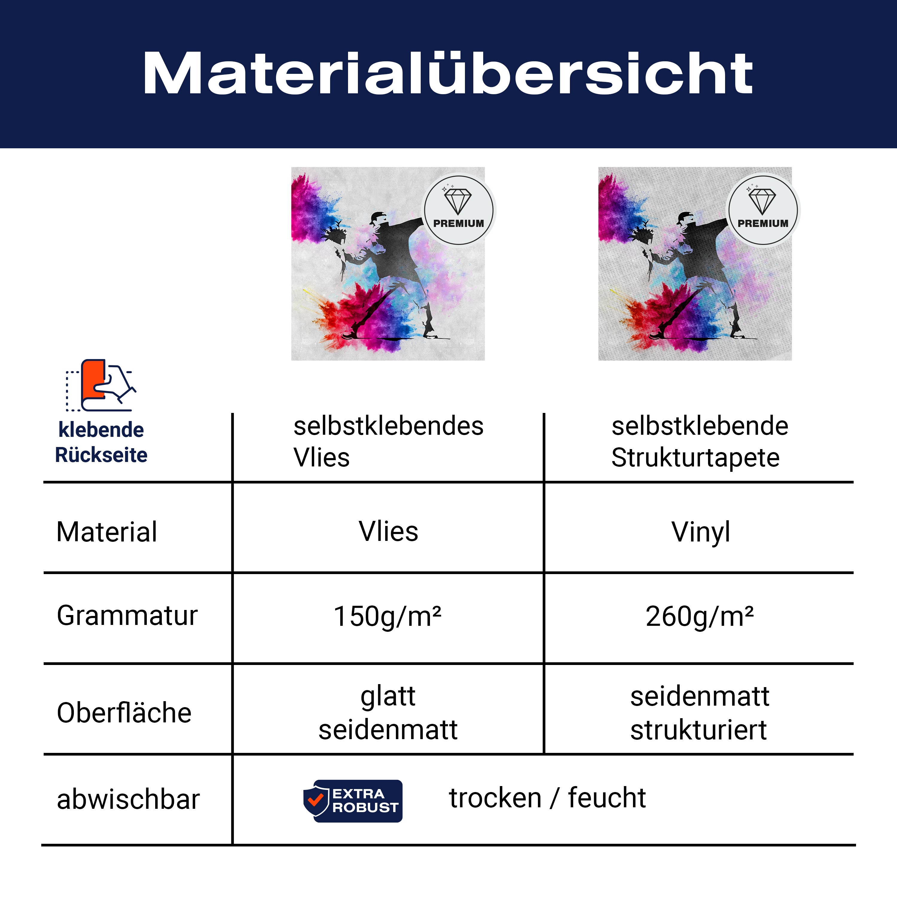 - Selbstklebendes Vlies 150g/m²: Einfach anzubringen, perfekt für Mietwohnungen.