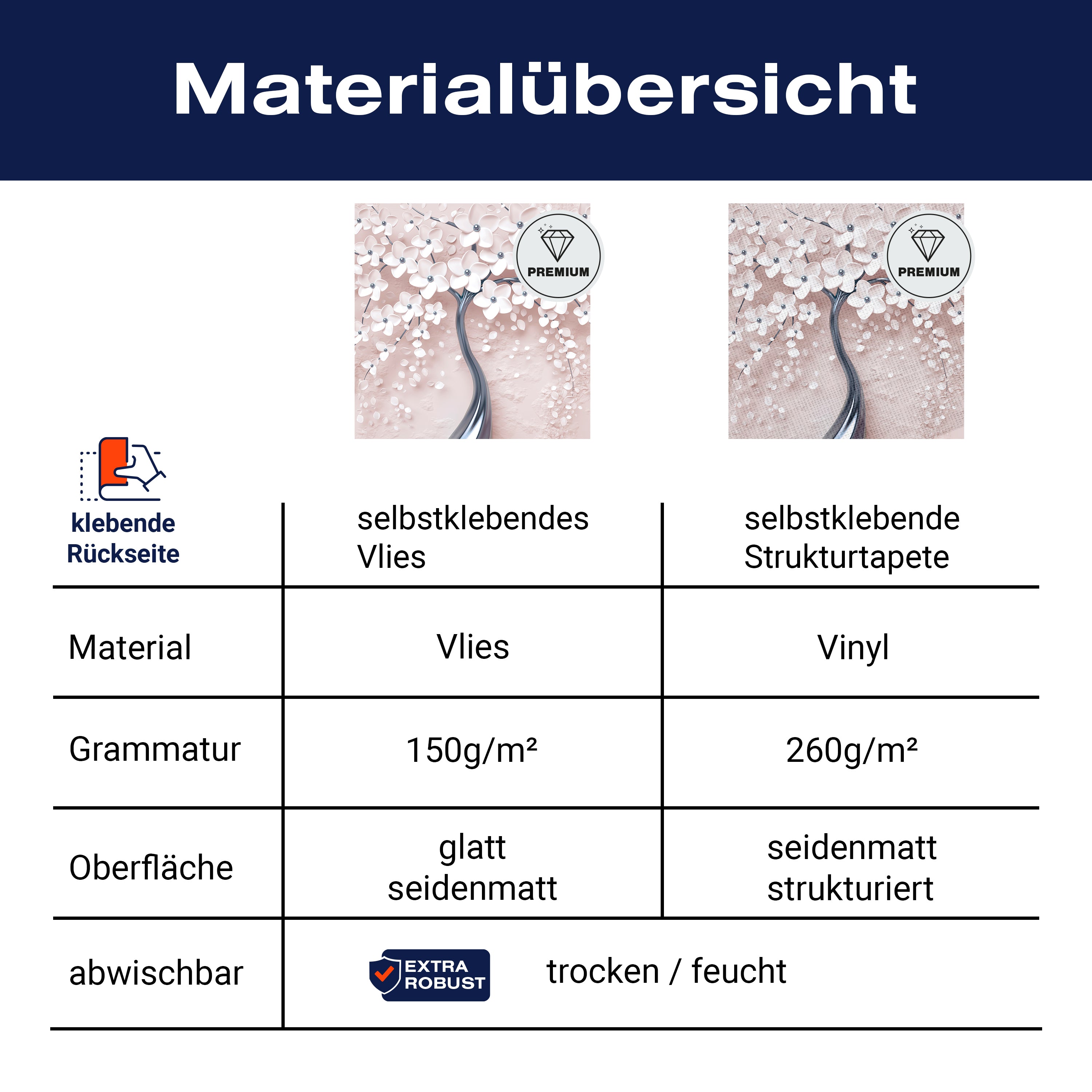 - Selbstklebendes Vlies 150g/m²: Einfach anzubringen, perfekt für Mietwohnungen.