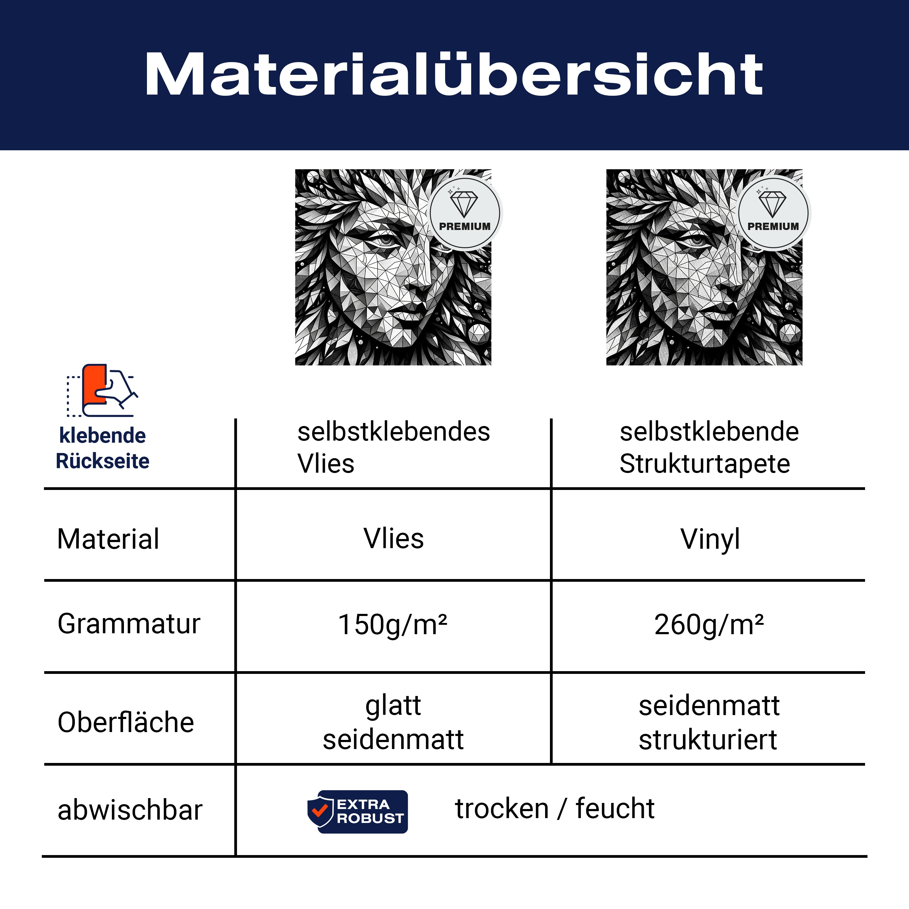 - Selbstklebendes Vlies 150g/m²: Einfach anzubringen, perfekt für Mietwohnungen.