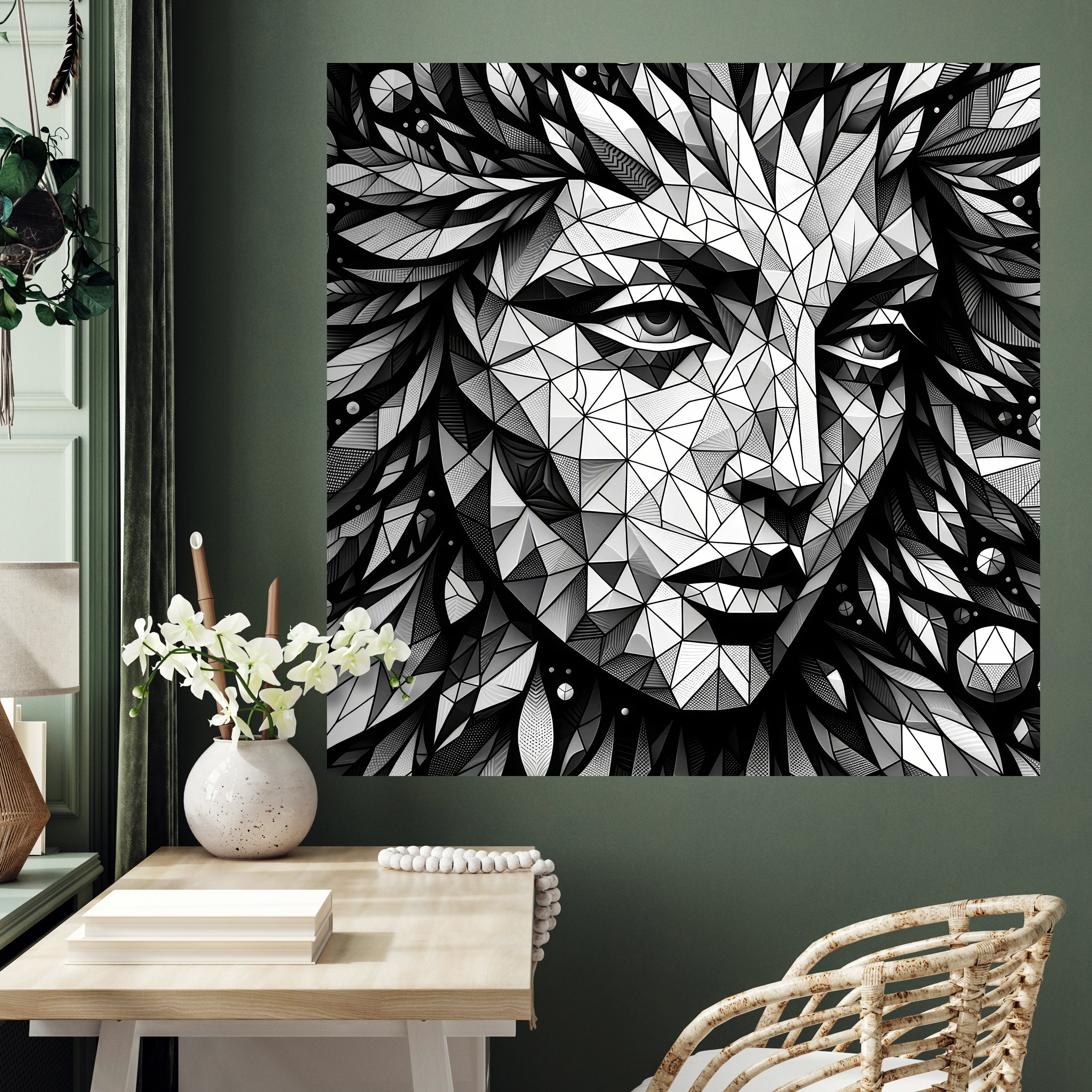 QUADRATISCHE FOTOTAPETE geometrisches Gesicht, Kunst