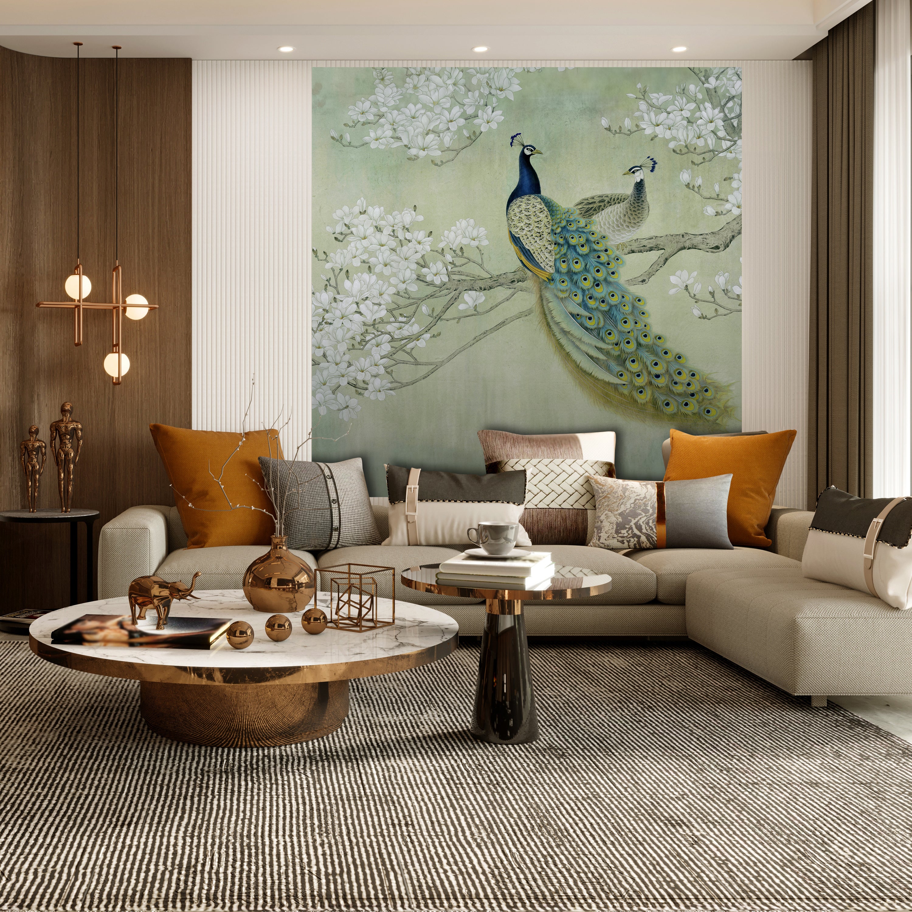 Träumst Du davon, Deine Wände in eine beeindruckende Kunstgalerie zu verwandeln? Mit unserer hochwertigen, quadratischen Fototapete Pfaue auf blühendem Zweig M0022 ist es jetzt möglich! Jede Wand wird zu einer Leinwand Deiner Kreativität.