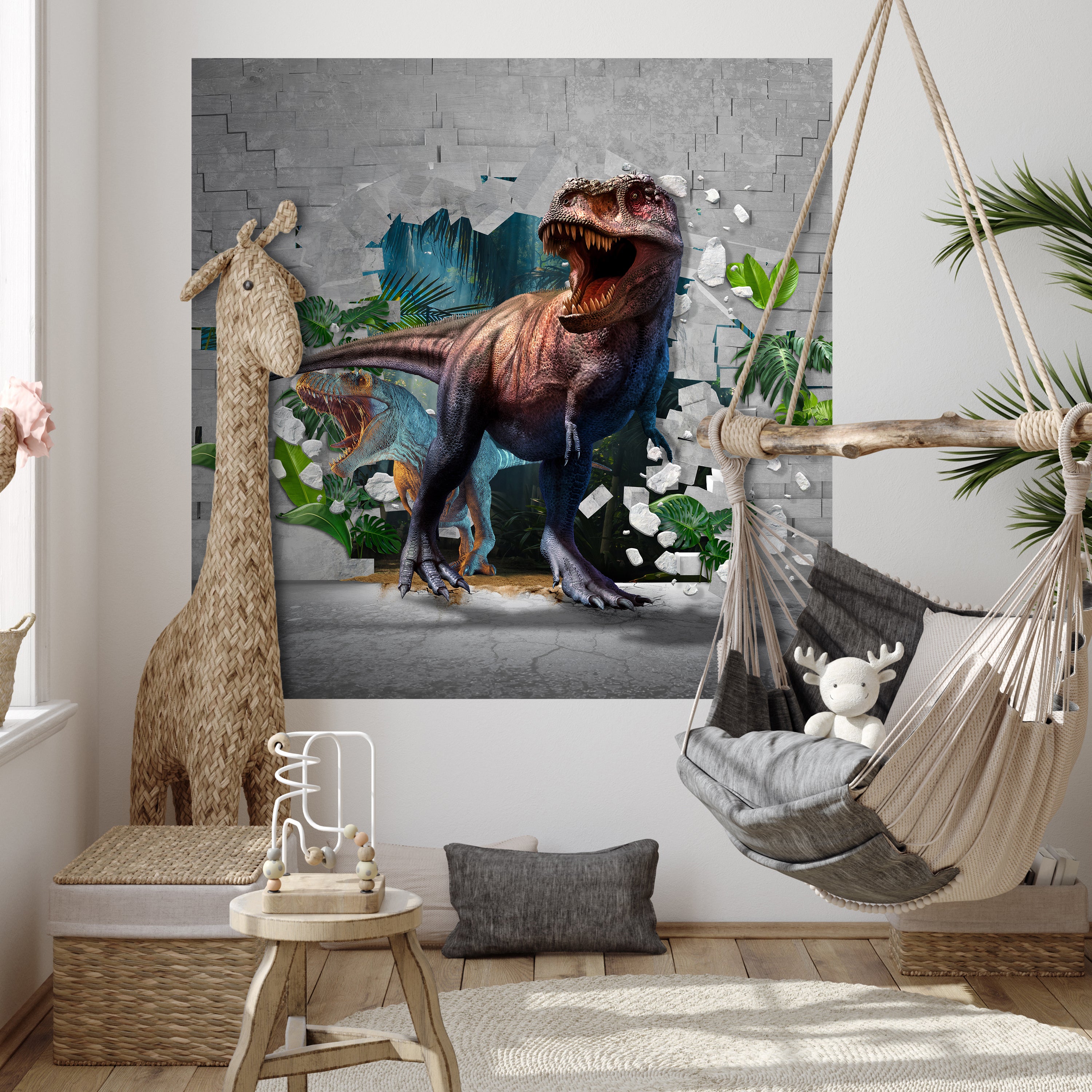 QUADRATISCHE FOTOTAPETE Wanddurchbruch mit Dinosauriern
