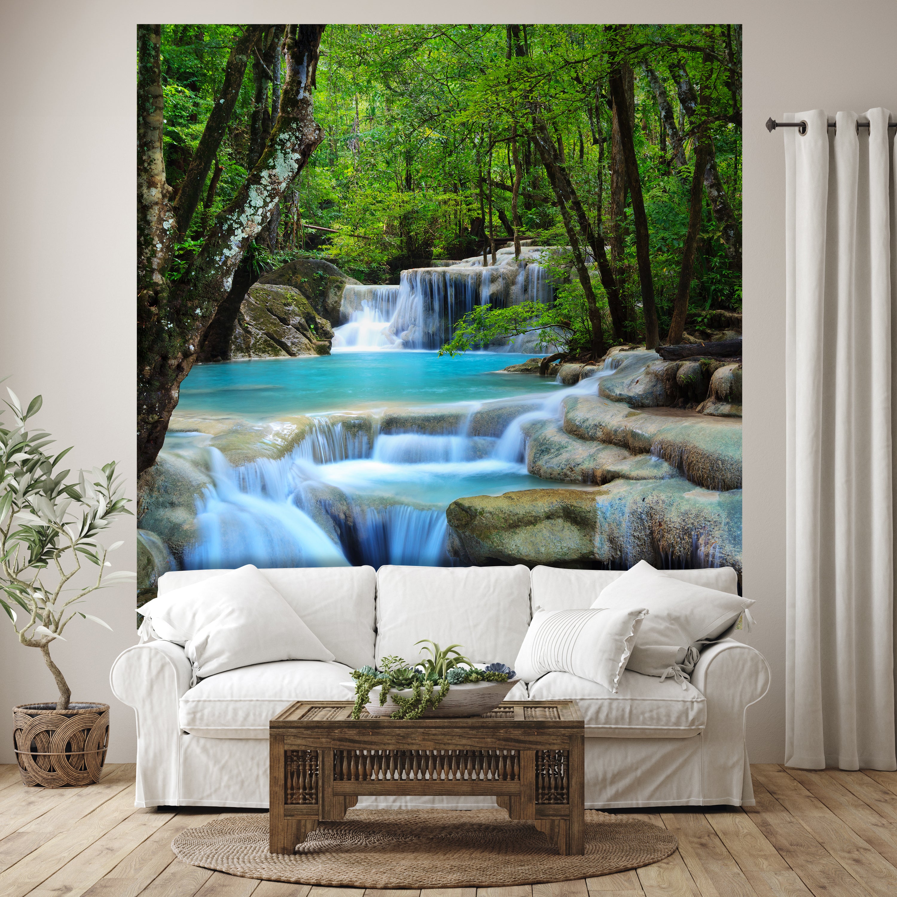Träumst Du davon, Deine Wände in eine beeindruckende Kunstgalerie zu verwandeln? Mit unserer hochwertigen, quadratischen Fototapete Wasserfall im Wald M0001 ist es jetzt möglich! Jede Wand wird zu einer Leinwand Deiner Kreativität.