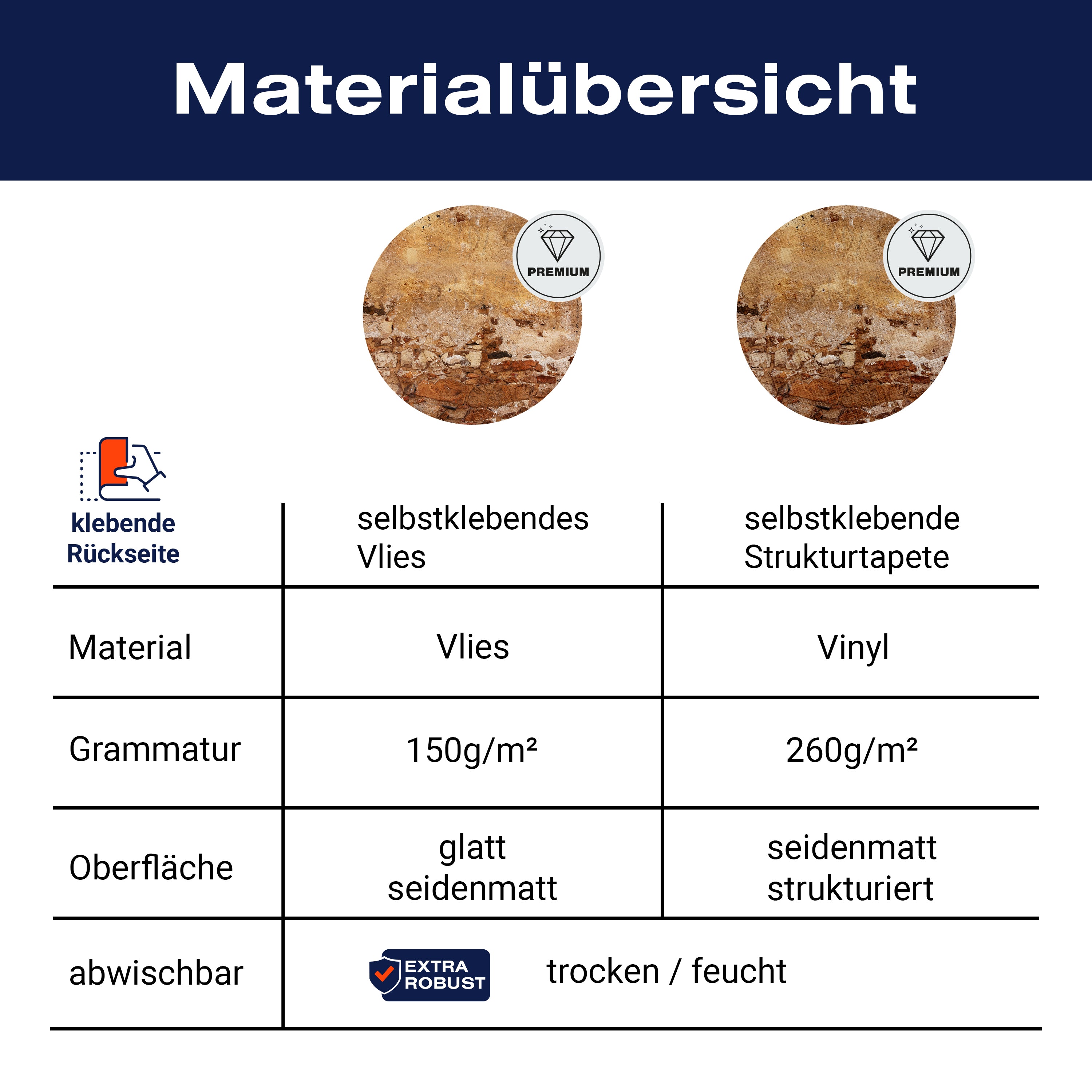 - Selbstklebendes Vlies 150g/m²: Einfach anzubringen, perfekt für Mietwohnungen.