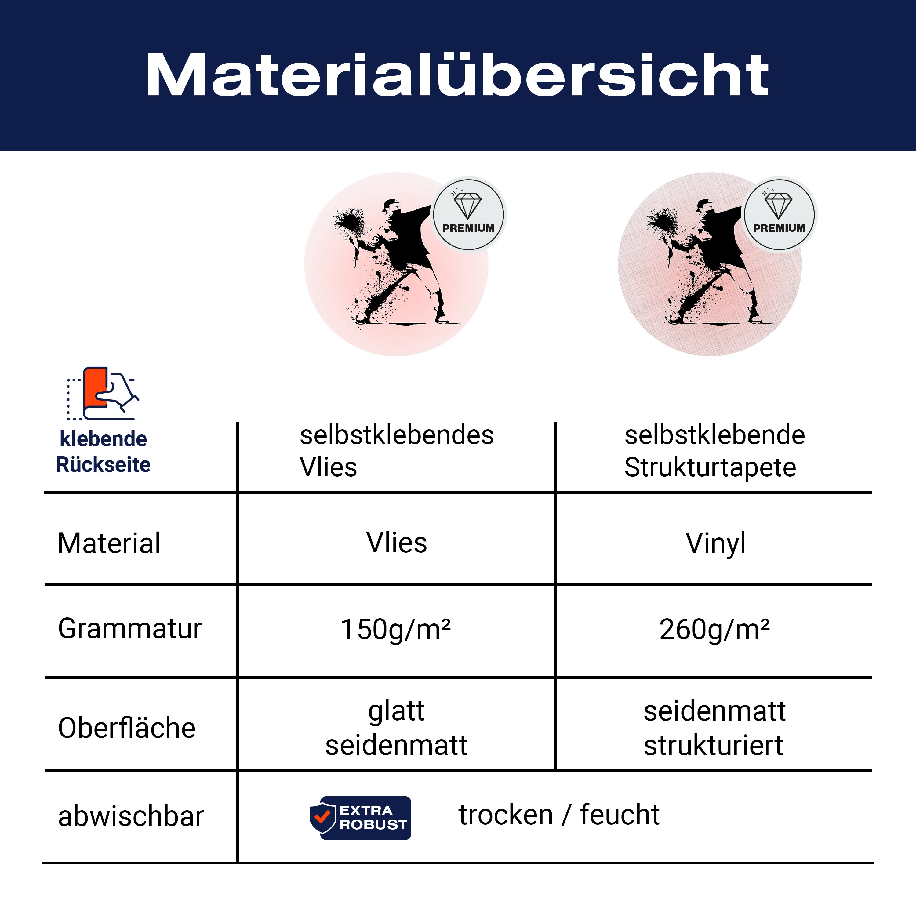 - Selbstklebendes Vlies 150g/m²: Einfach anzubringen, perfekt für Mietwohnungen.