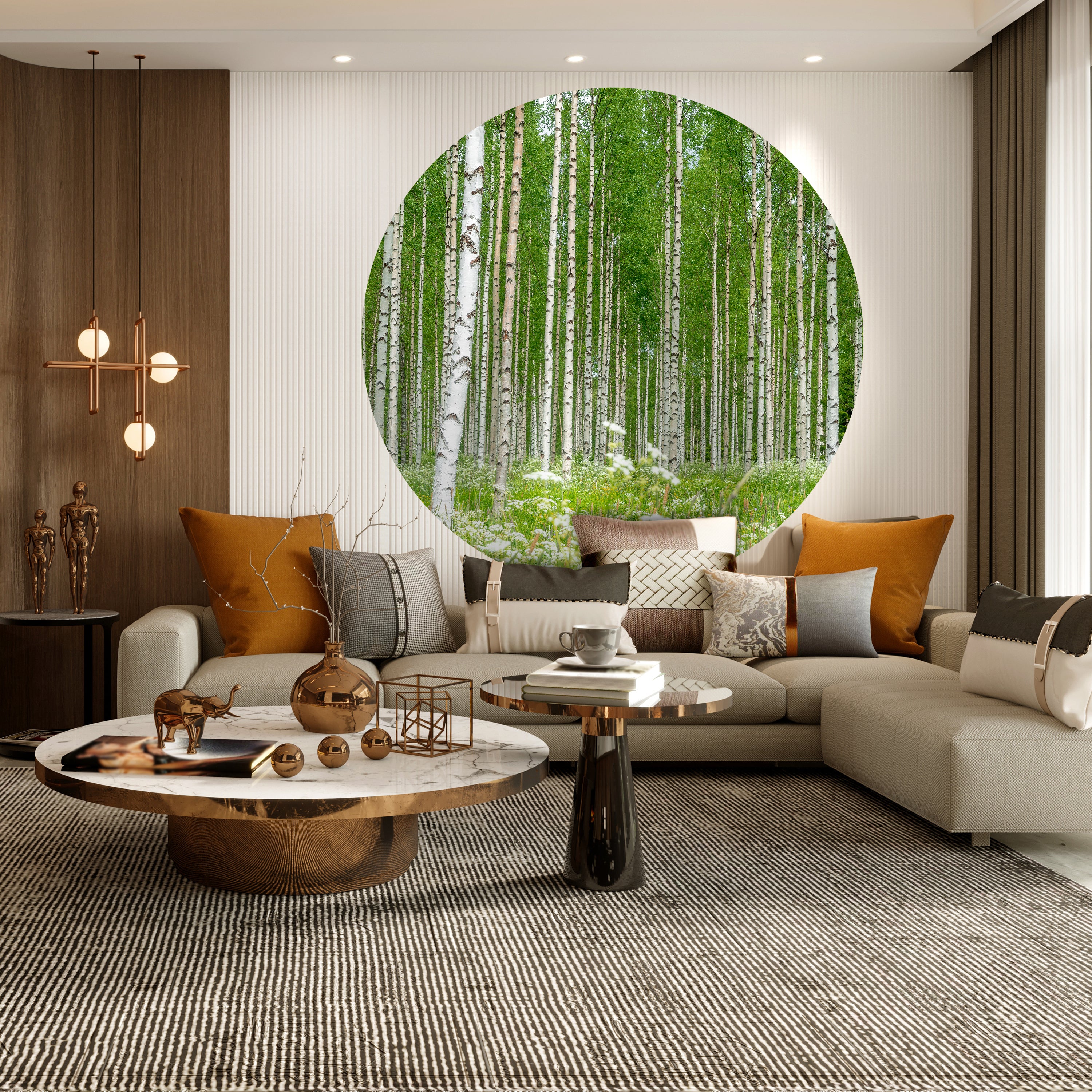 RUNDE FOTOTAPETE Birkenwald mit Blumenwiese