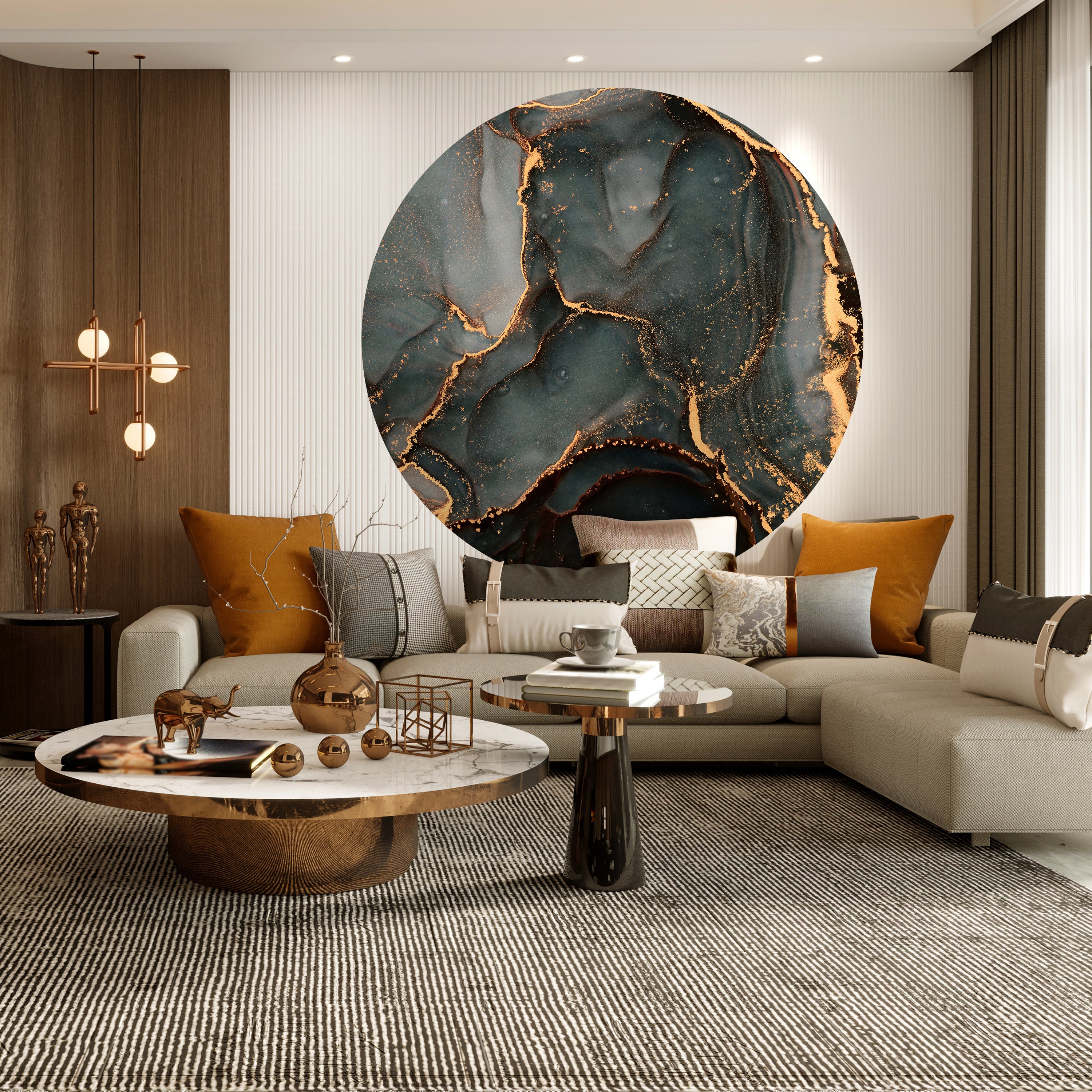 Träumst Du davon, Deine Wände in eine beeindruckende Kunstgalerie zu verwandeln? Mit unserer hochwertigen, runden Fototapete blaugraue Marmoroptik M0041 ist es jetzt möglich! Jede Wand wird zu einer Leinwand Deiner Kreativität.