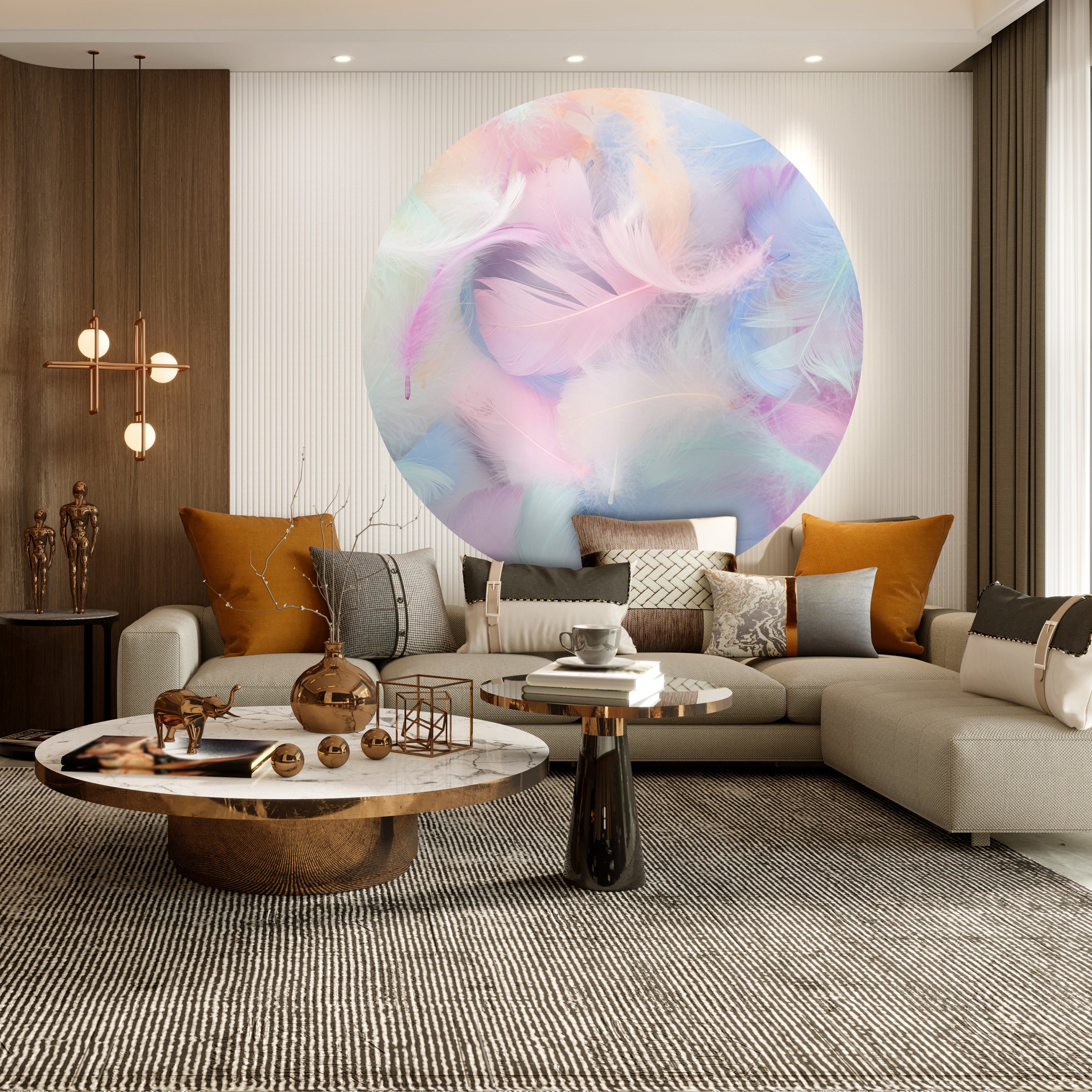 Träumst Du davon, Deine Wände in eine beeindruckende Kunstgalerie zu verwandeln? Mit unserer hochwertigen, runden Fototapete bunte Federn M0039 ist es jetzt möglich! Jede Wand wird zu einer Leinwand Deiner Kreativität.
