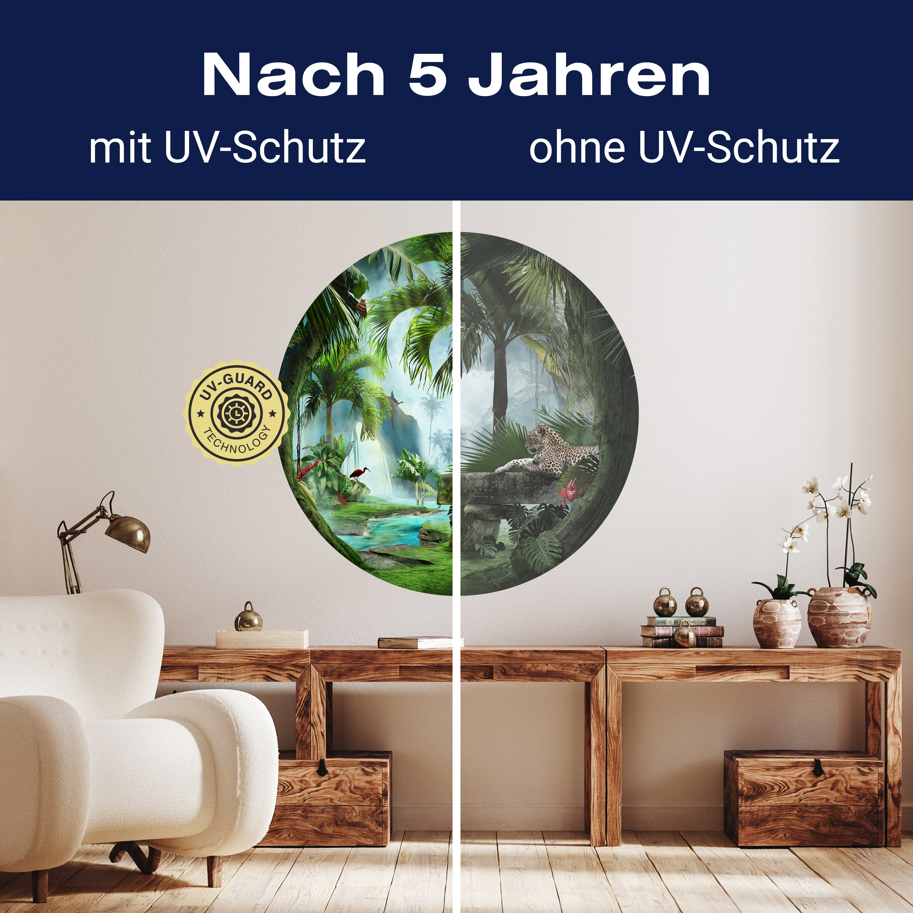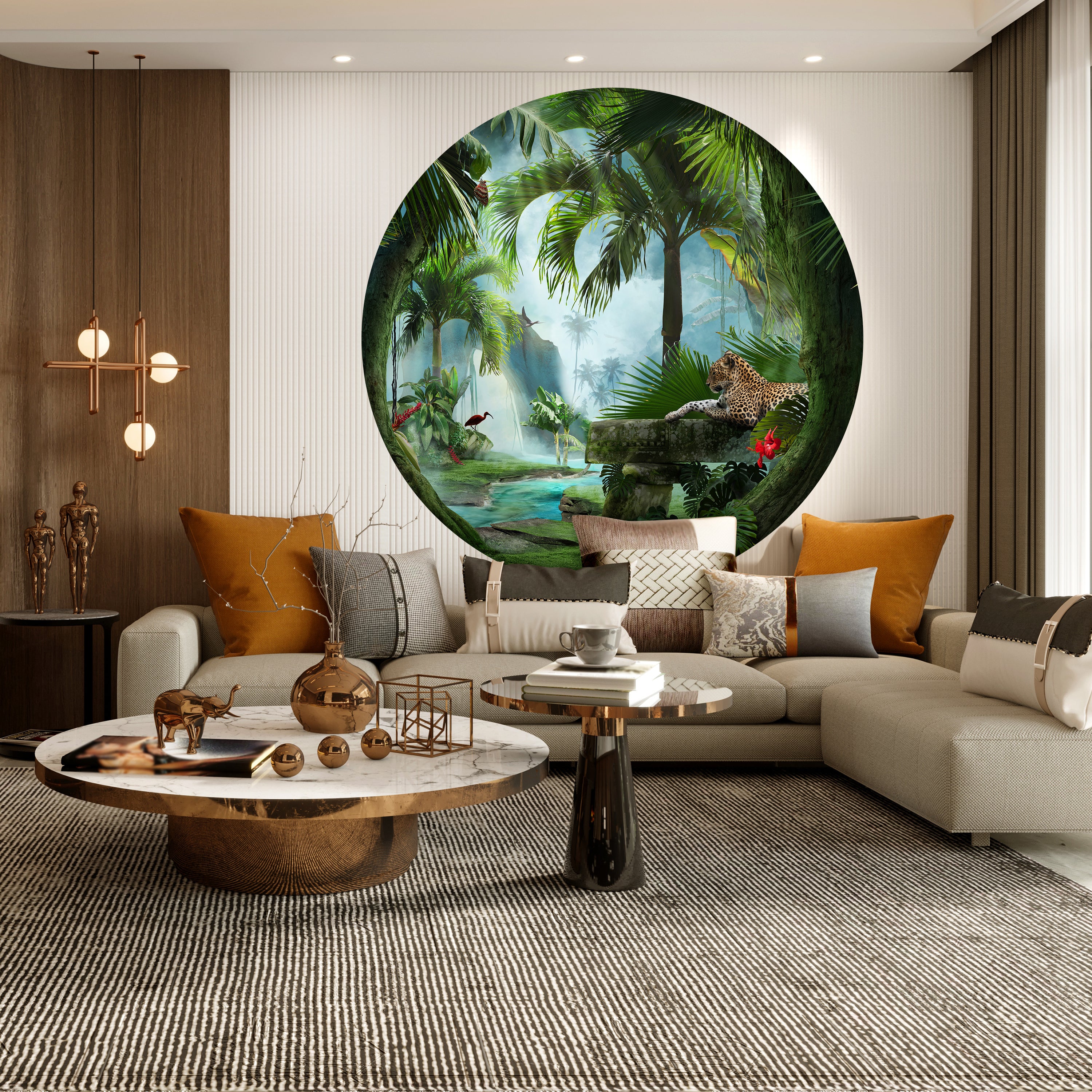 Träumst Du davon, Deine Wände in eine beeindruckende Kunstgalerie zu verwandeln? Mit unserer hochwertigen, runden Fototapete Jaguar im Dschungel M0030 ist es jetzt möglich! Jede Wand wird zu einer Leinwand Deiner Kreativität.