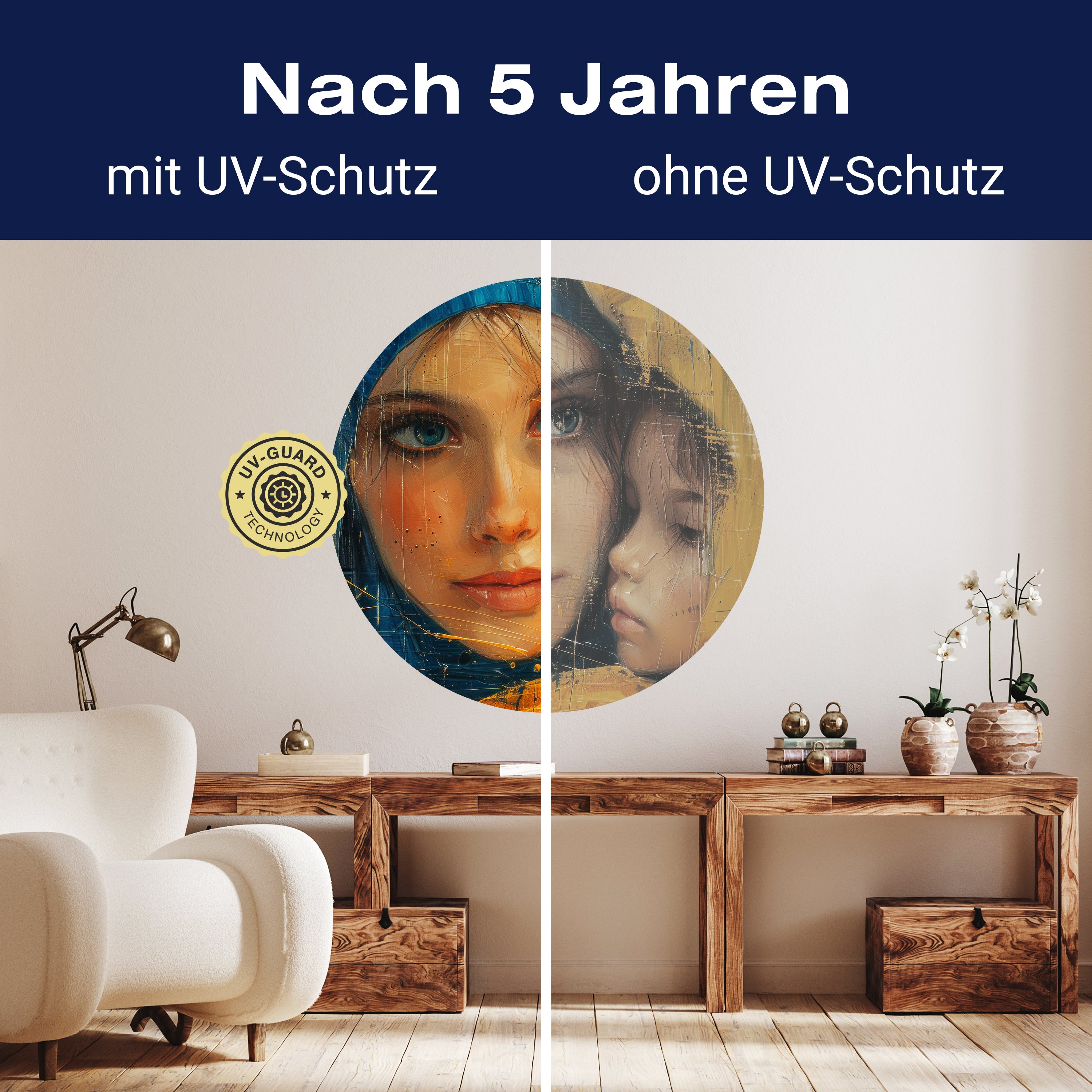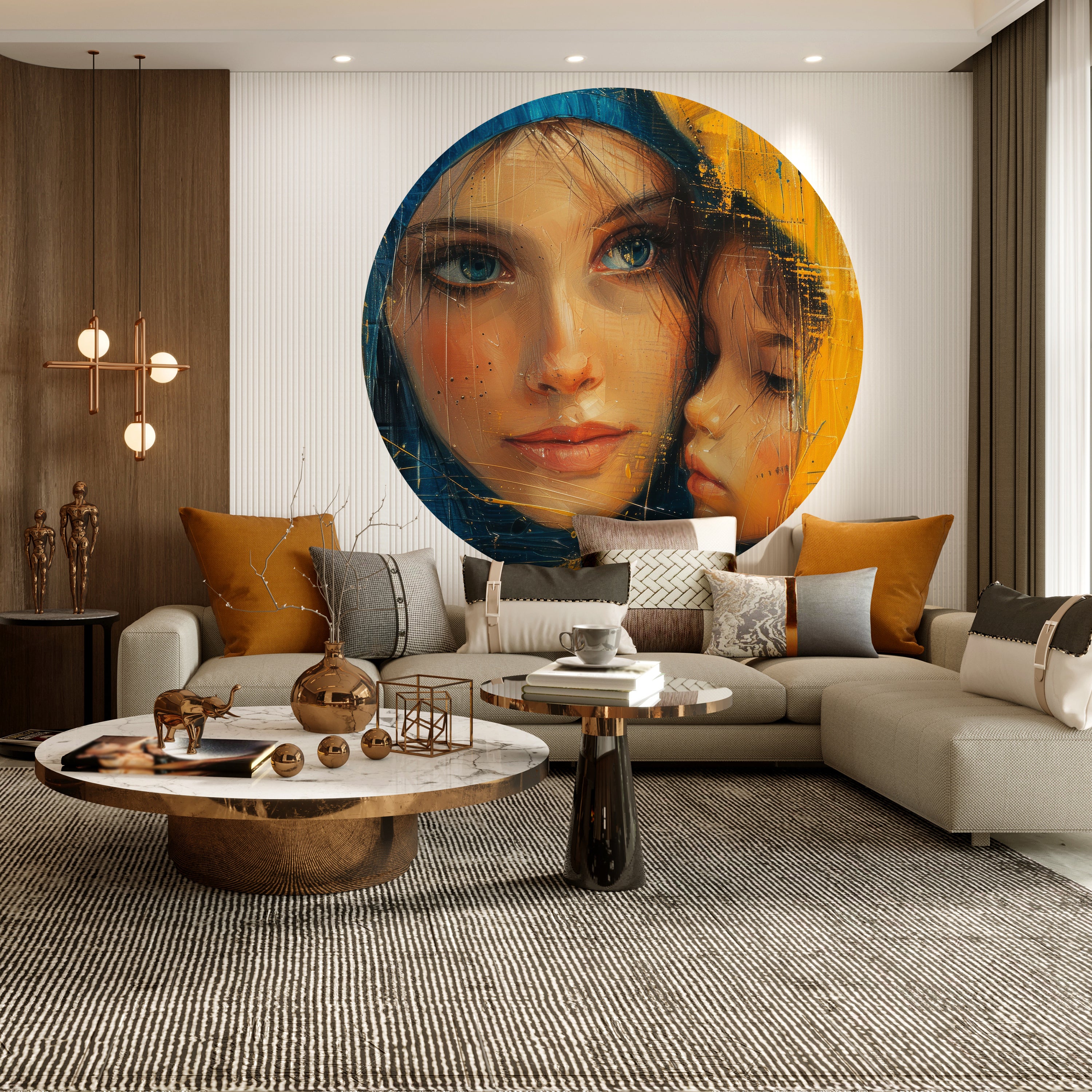 Träumst Du davon, Deine Wände in eine beeindruckende Kunstgalerie zu verwandeln? Mit unserer hochwertigen, runden Fototapete Malerei Frau Kind M0054 ist es jetzt möglich! Jede Wand wird zu einer Leinwand Deiner Kreativität.
