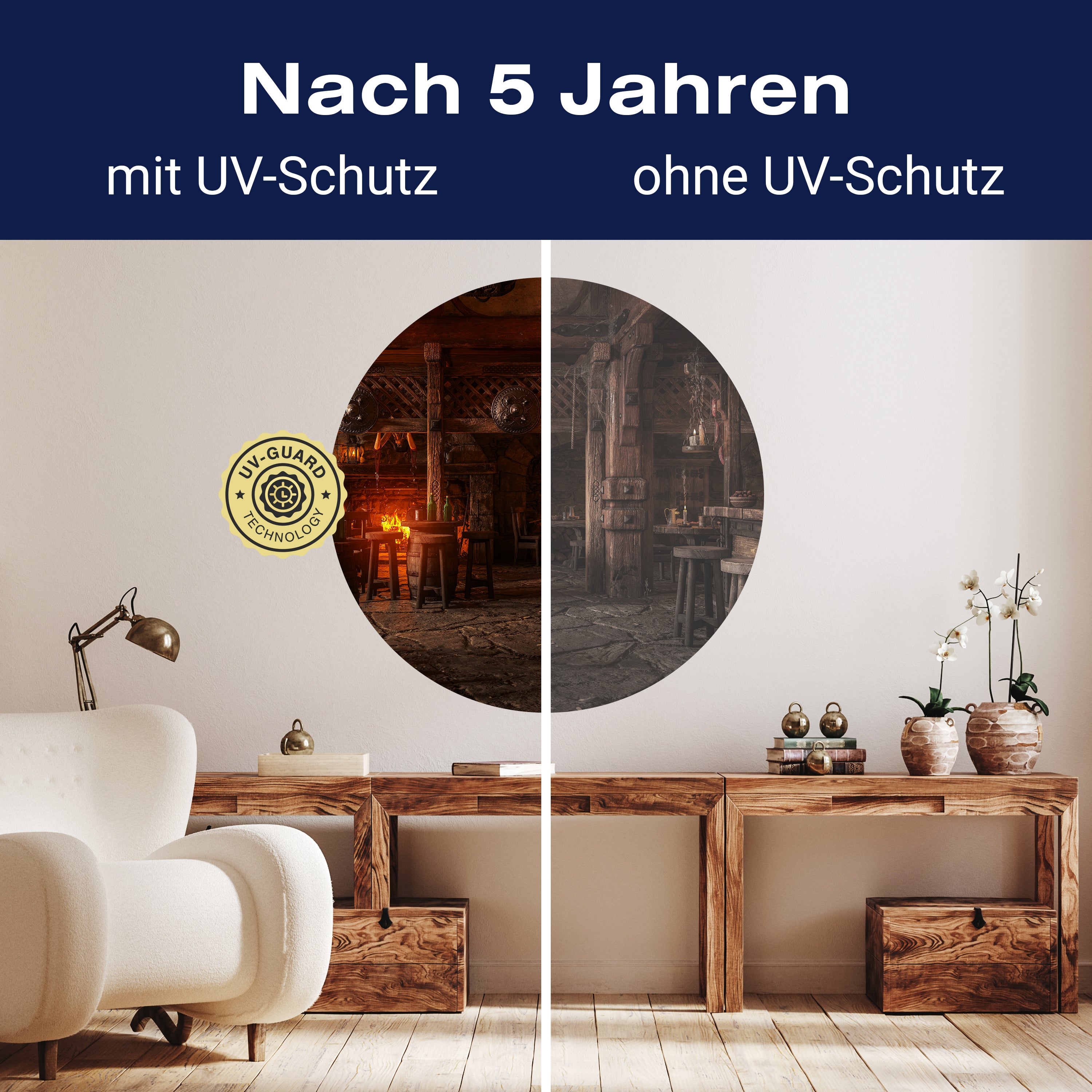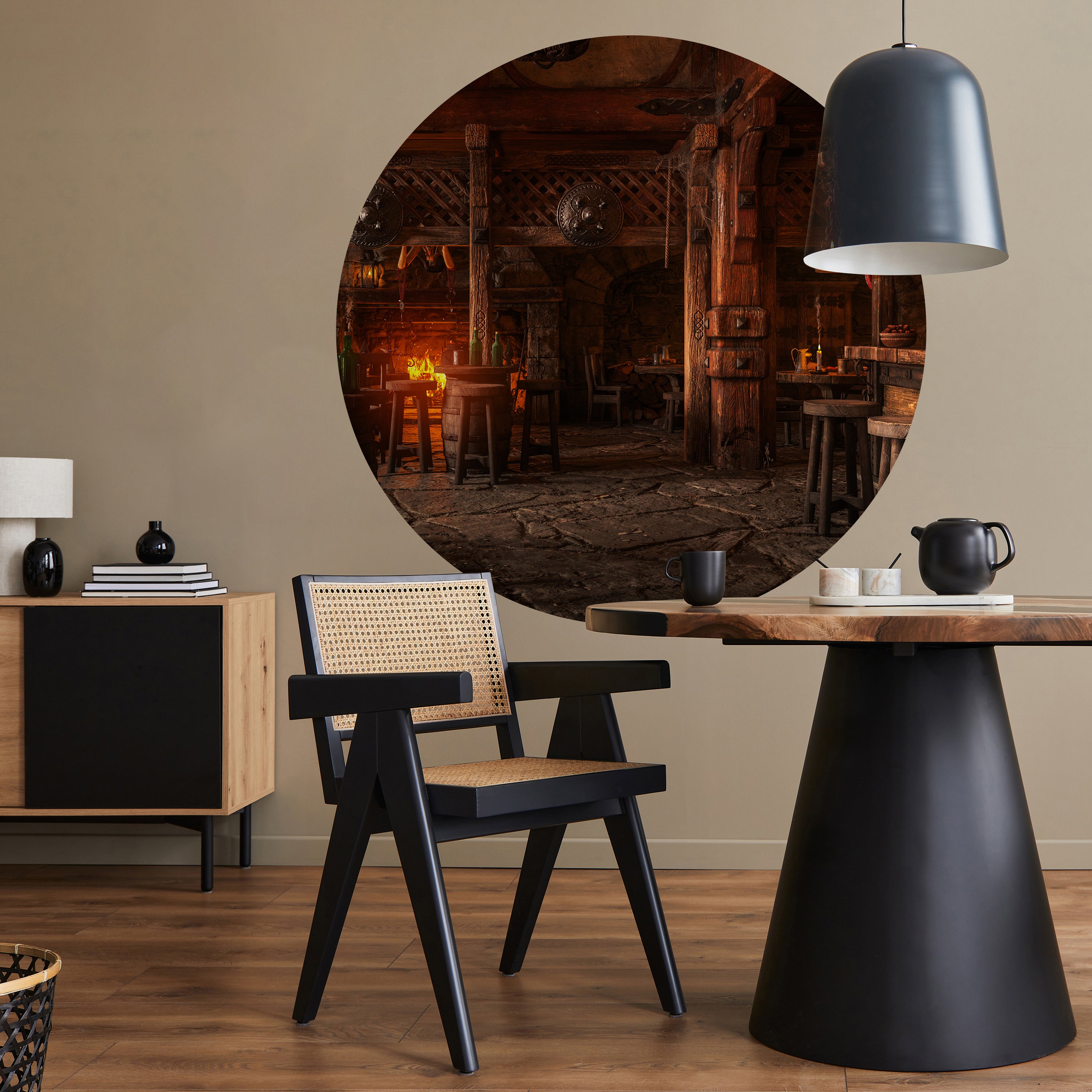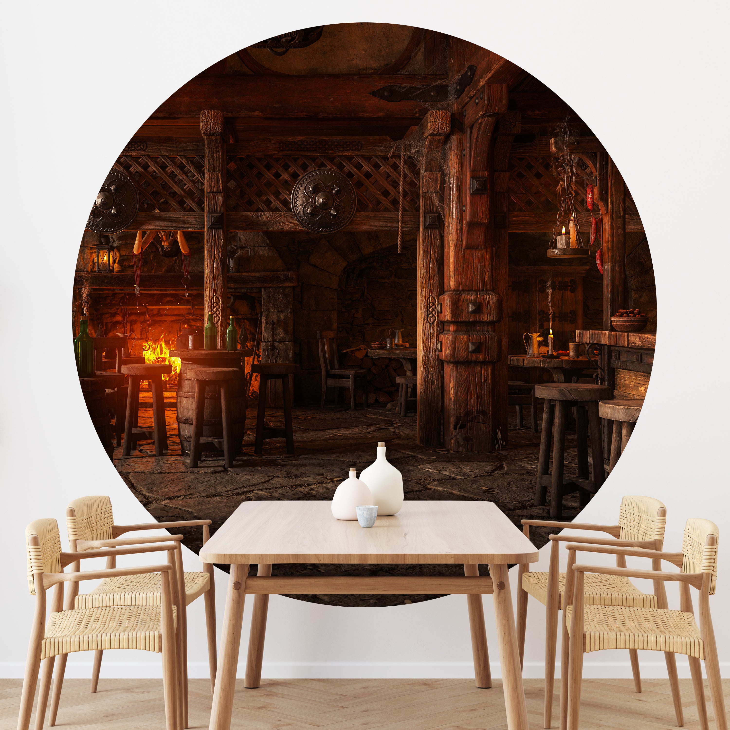 Träumst Du davon, Deine Wände in eine beeindruckende Kunstgalerie zu verwandeln? Mit unserer hochwertigen, runden Fototapete Mittelalterliche Taverne M0042 ist es jetzt möglich! Jede Wand wird zu einer Leinwand Deiner Kreativität.