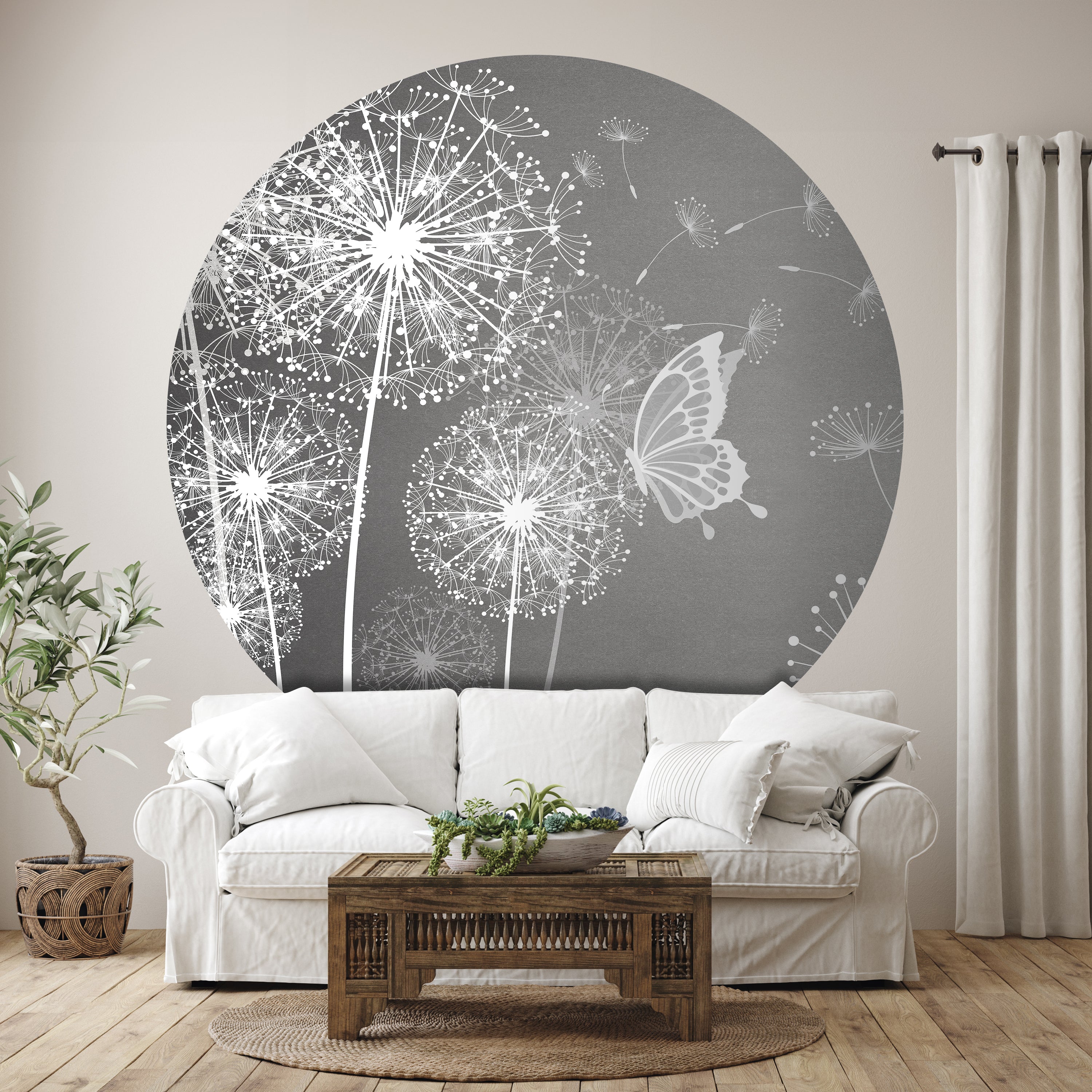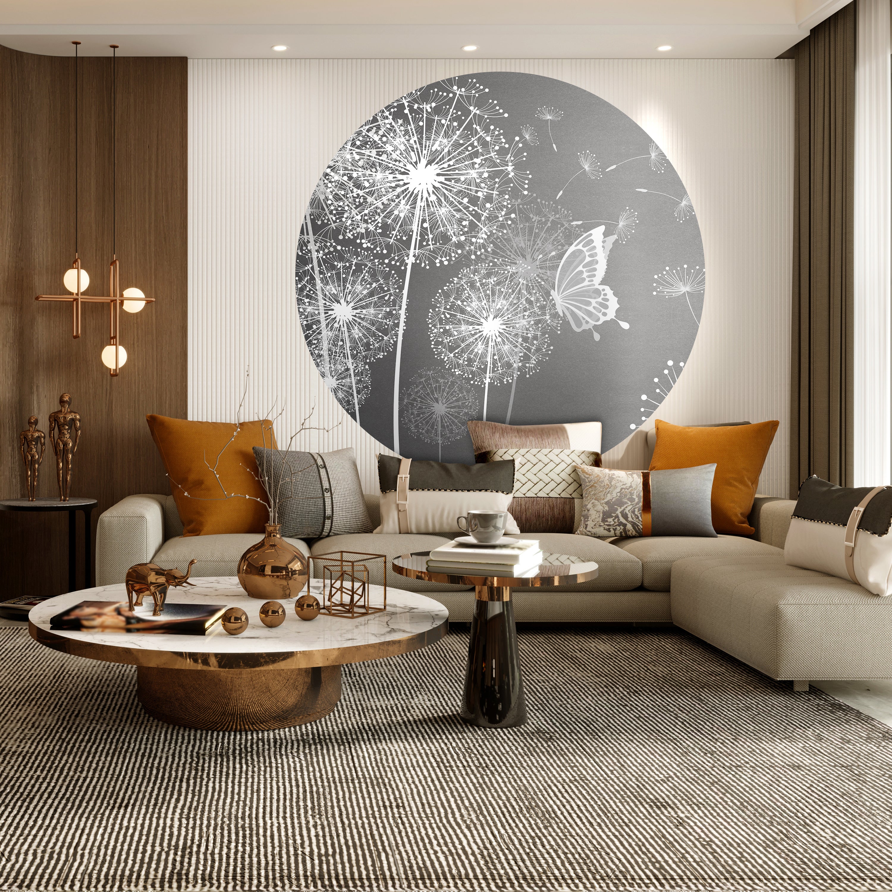 RUNDE FOTOTAPETE Pusteblumen mit Schmetterlingen