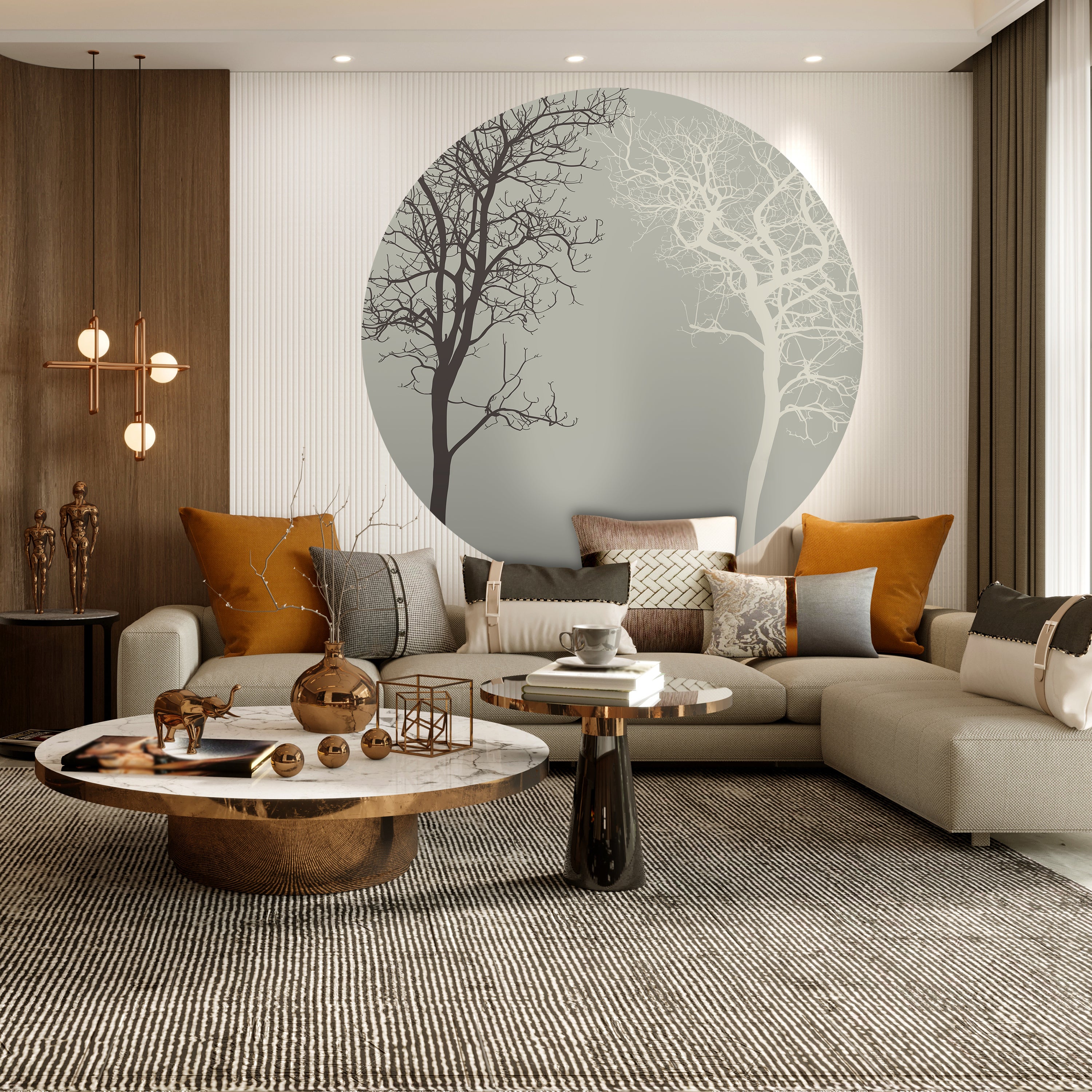Träumst Du davon, Deine Wände in eine beeindruckende Kunstgalerie zu verwandeln? Mit unserer hochwertigen, runden Fototapete Silhouetten von Bäumen M0015 ist es jetzt möglich! Jede Wand wird zu einer Leinwand Deiner Kreativität.