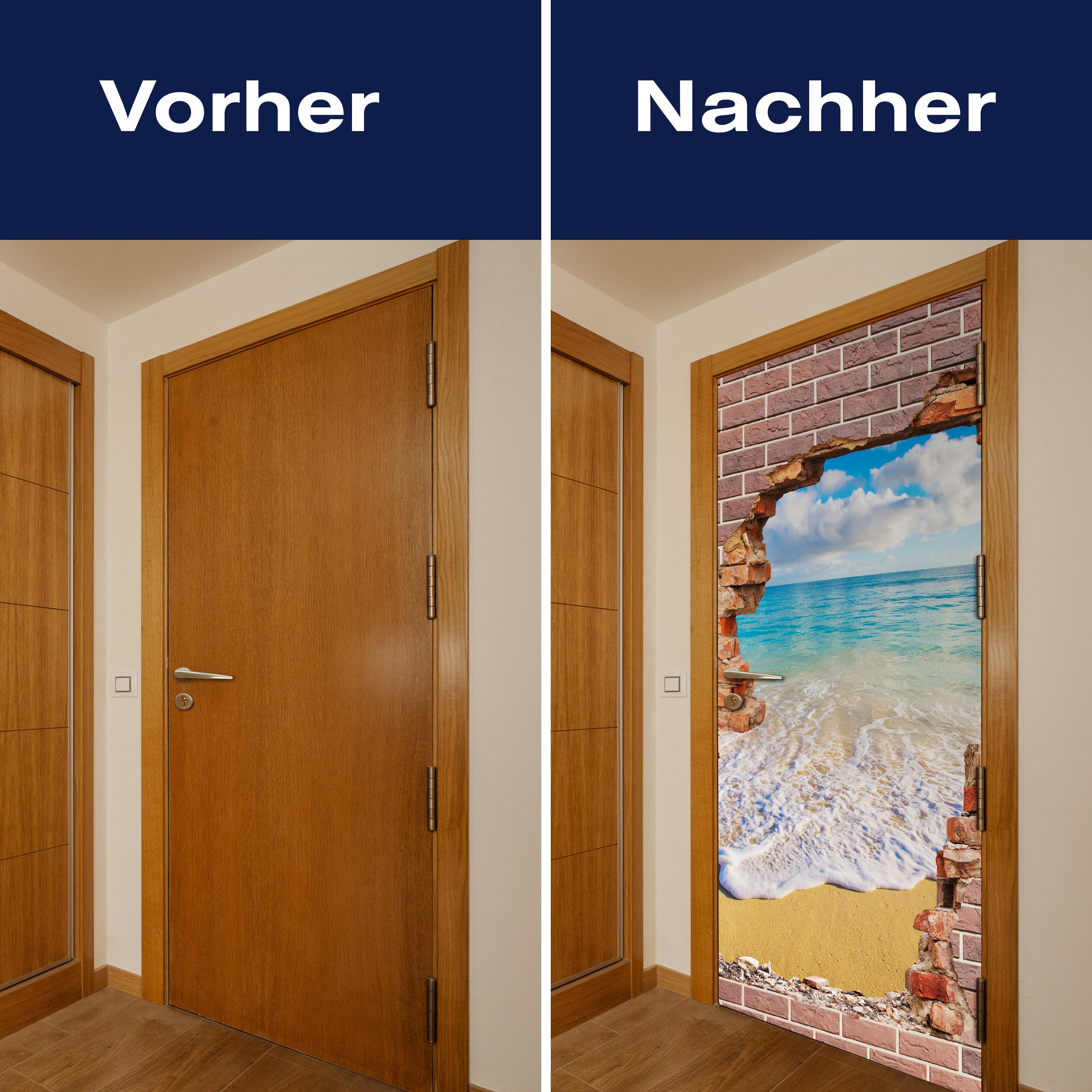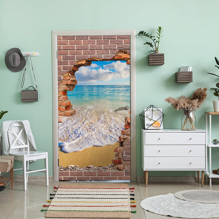 Entdecke die Türtapete 3D Backstein, Strand, Meer, Urlaub